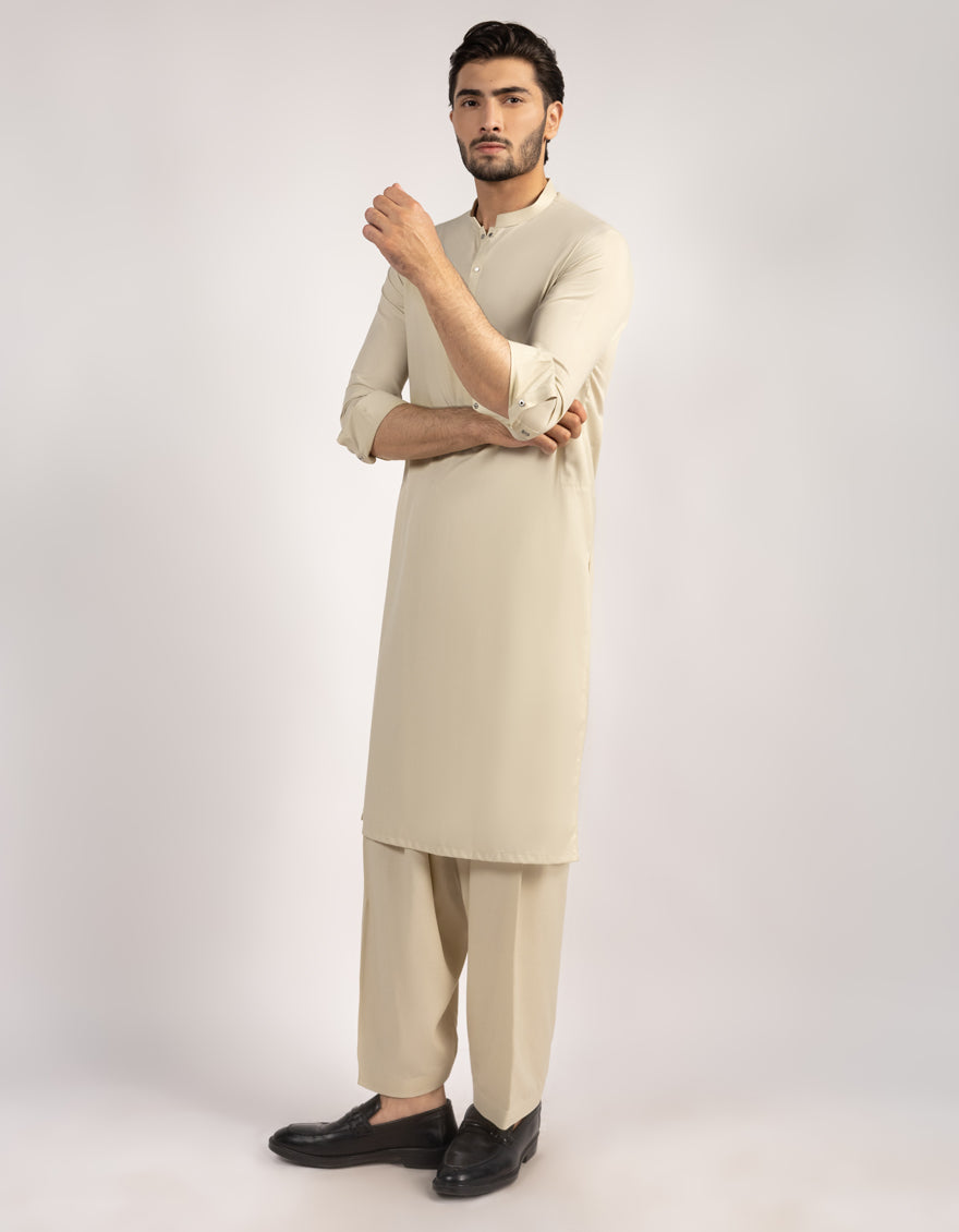 A classic eastern wear set designed with clean stitching and thoughtful detailing. The Fawn Blended Casual Kameez Shalwar offers a neat look & comfortable fit - ideal for long wear, daily use, or special occasions with a touch of tradition.