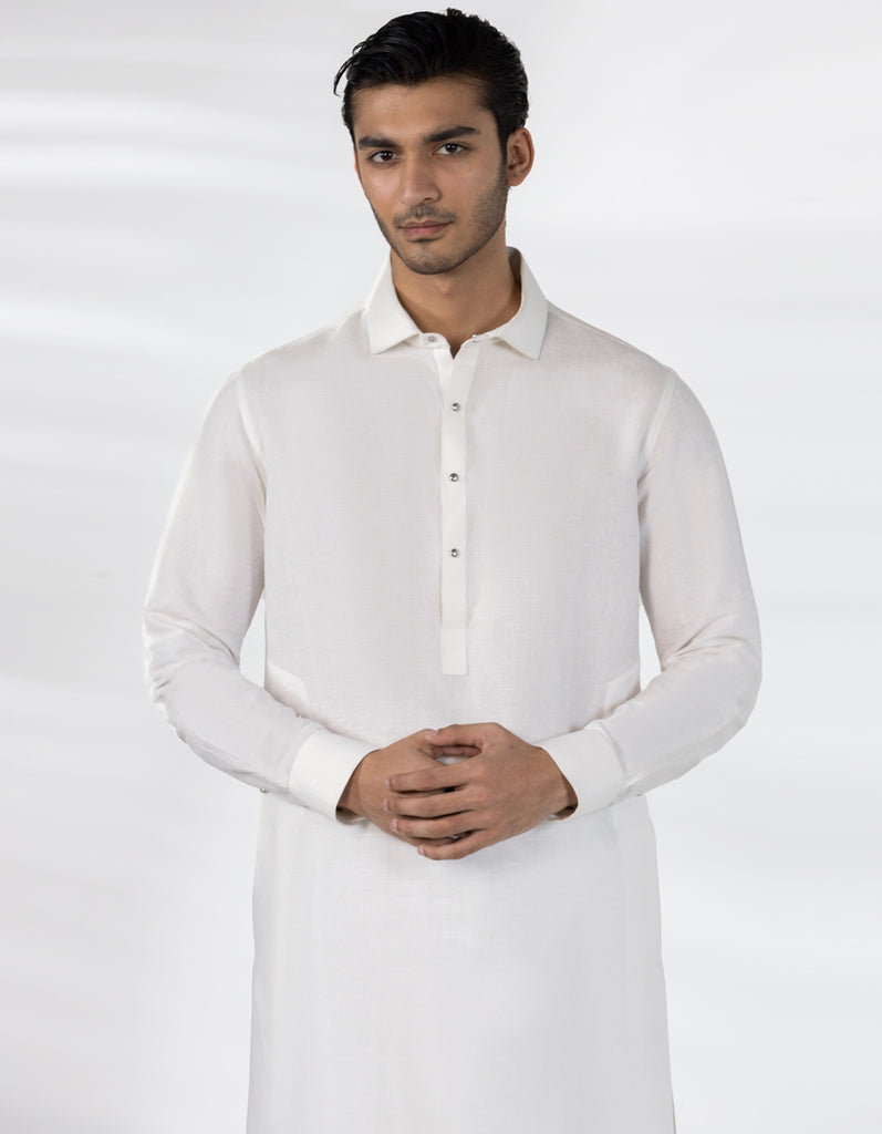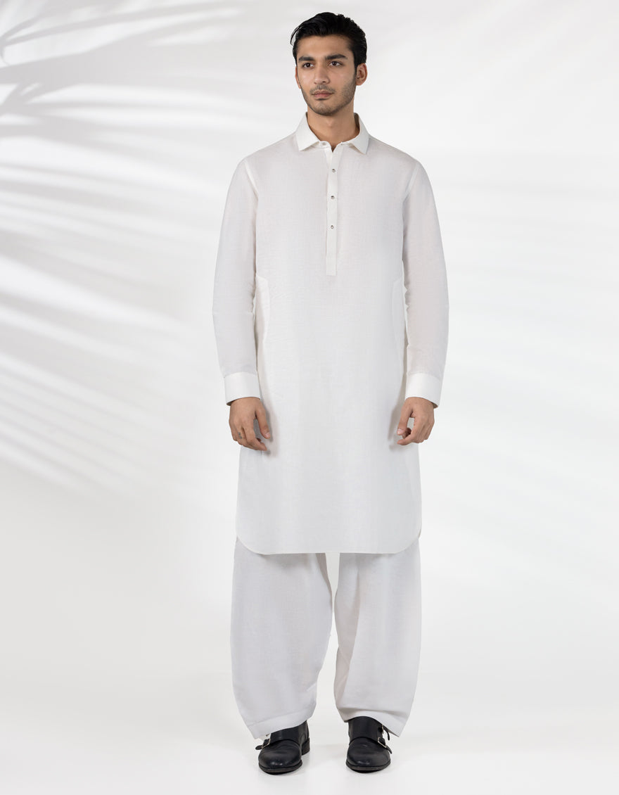 A classic eastern wear set designed with clean stitching and thoughtful detailing. The Off White Cotton Casual Kameez Shalwar offers a neat look & comfortable fit - ideal for long wear, daily use, or special occasions with a touch of tradition.