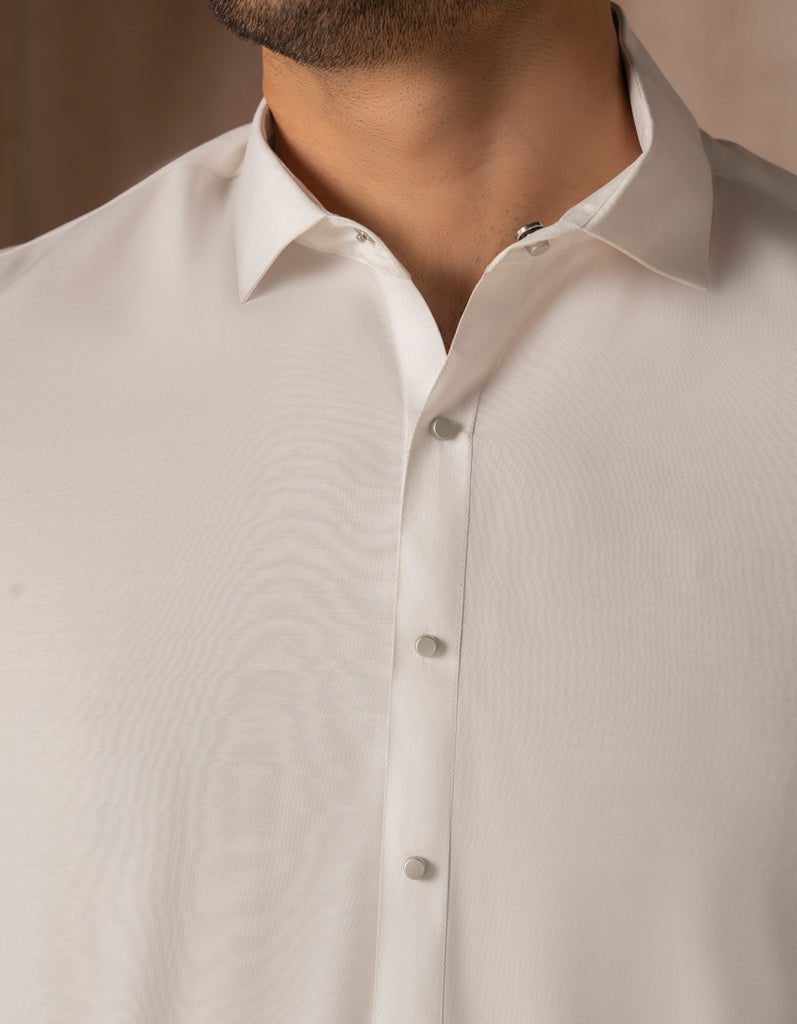 Traditional and simple, this white blended casual kameez shalwar is made for comfortable daily wear and relaxed occasions.