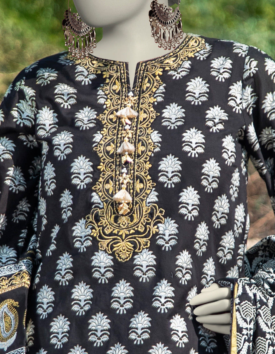 BLACK LAWN 3PC STITCHED | JLAWN-S-25-057/S ROYAL GARDEN-3