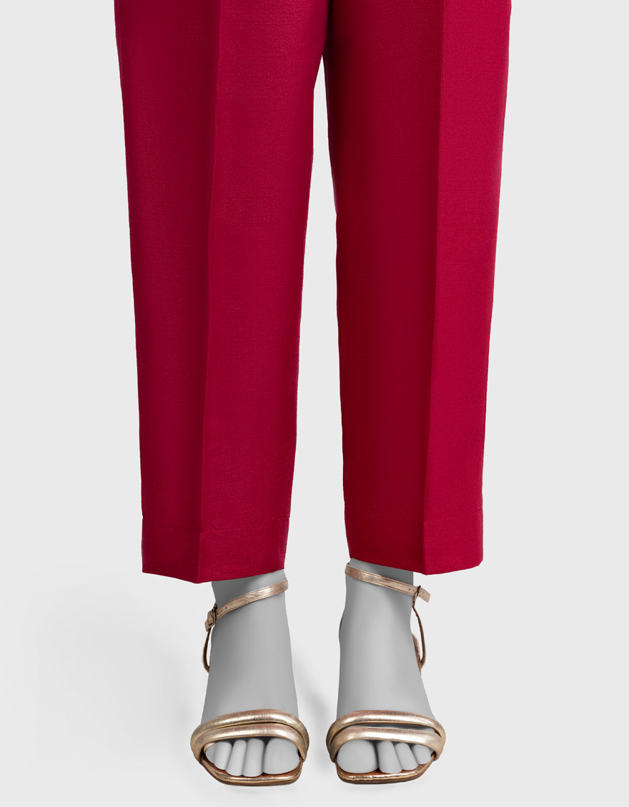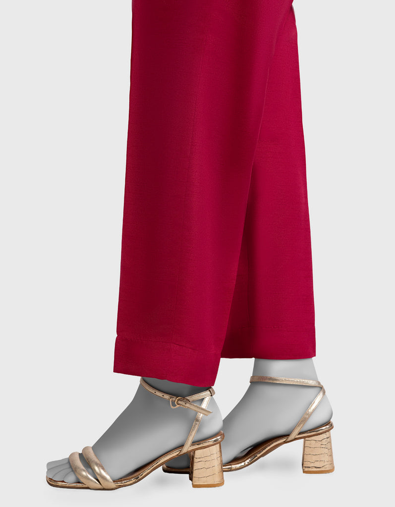 Maroon Raw Silk Basic Trousers For Women