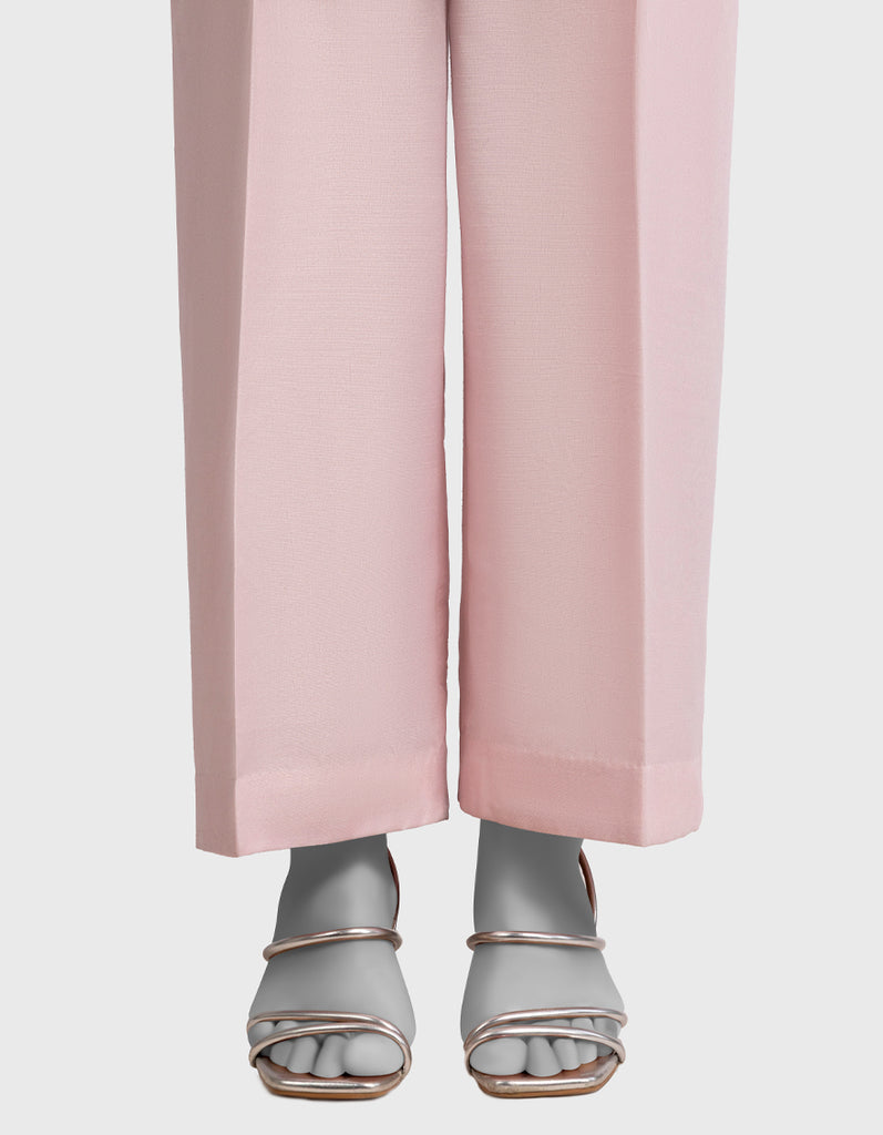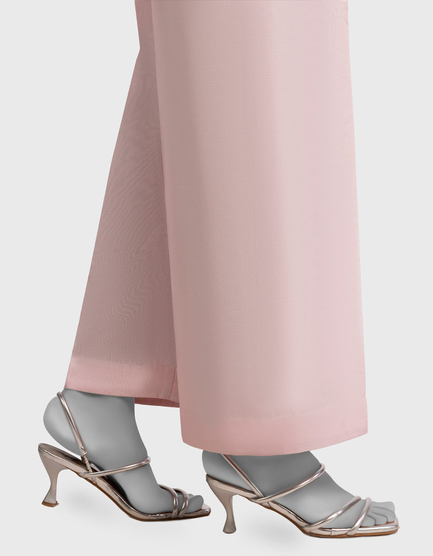 Pink Raw Silk Basic Trousers For Women