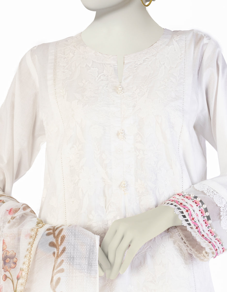 WHITE LAWN 3PC UNSTITCHED | JLAWN-S-25-917 LUXE-