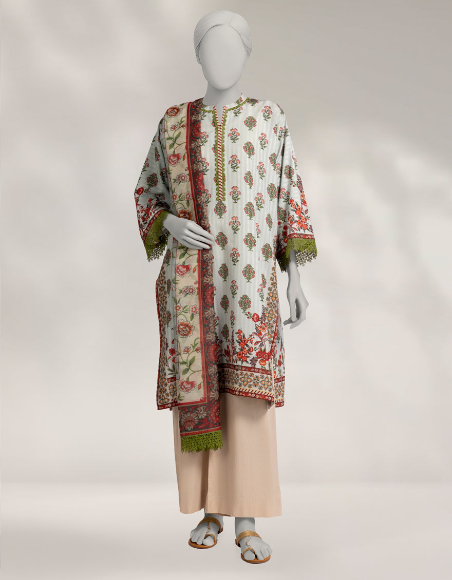 GREEN DOBBY 2PC UNSTITCHED | JLAWN-W-JDS-25-1195 FLORAL ART-1