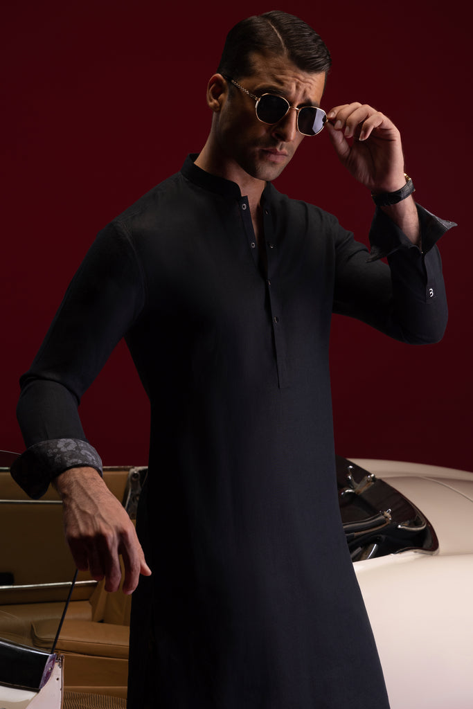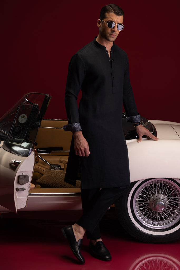 BLACK LINEN KURTA TROUSERS | CCMKT-S-39365-2/2-NANCY