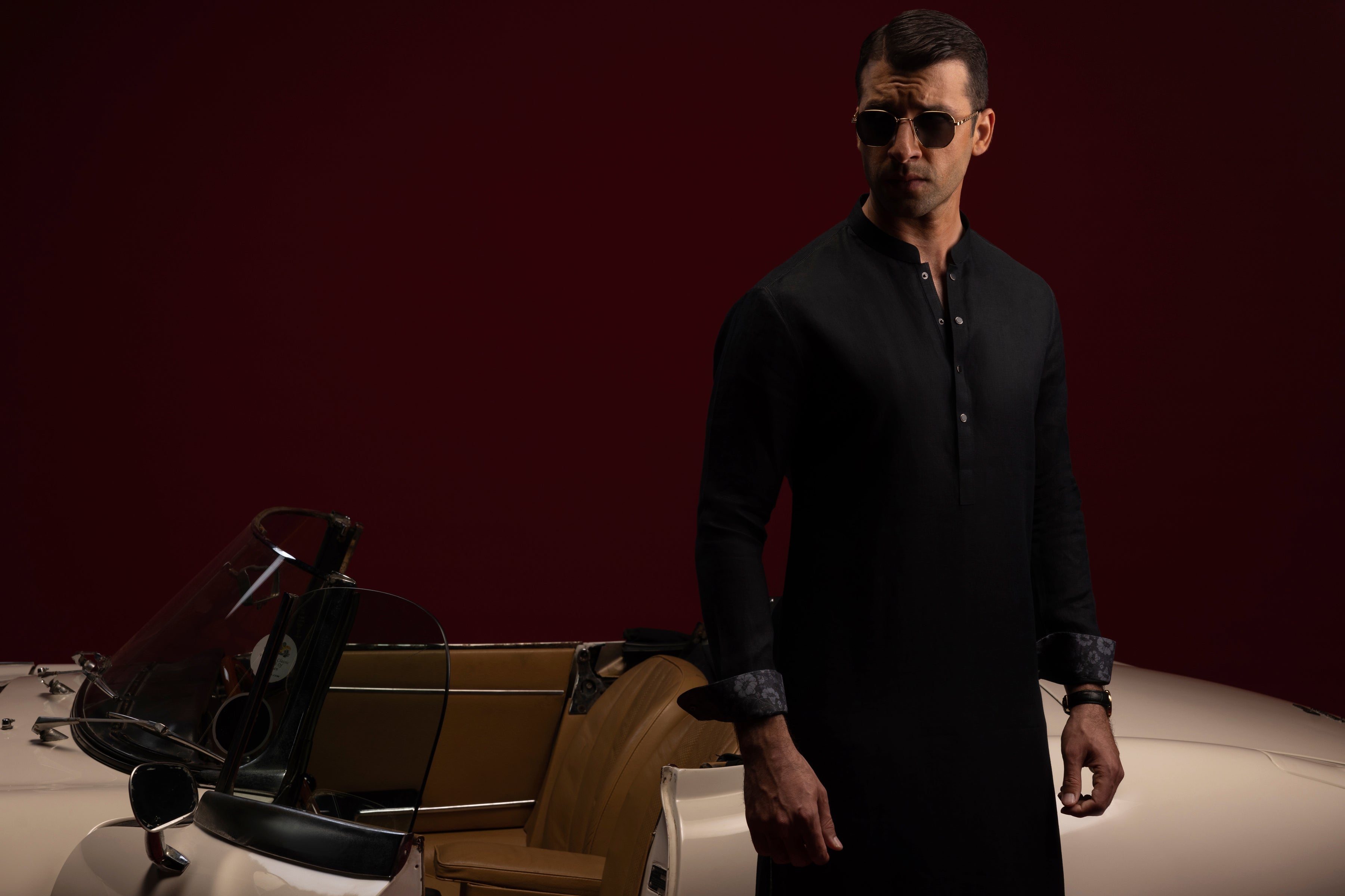 Band Collar With Cuff. 2 Needle Work On Front, Cuffs, Sleeve Vent & Yoke. Embroidery On Back Yoke