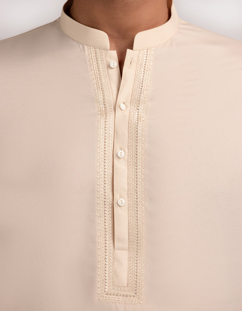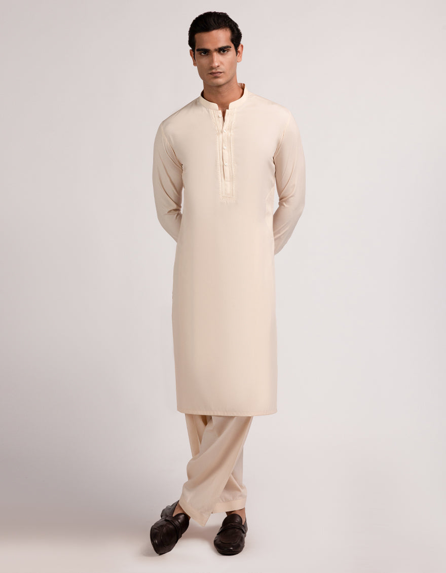 Designed for a sharper, more structured appearance, this Fawn Kurta Trousers set offers a modern fit with clean lines. The kurta features subtle detailing, while the straight-cut trousers ensure a neat silhouette. Perfect for events, workdays, or weekend wear.