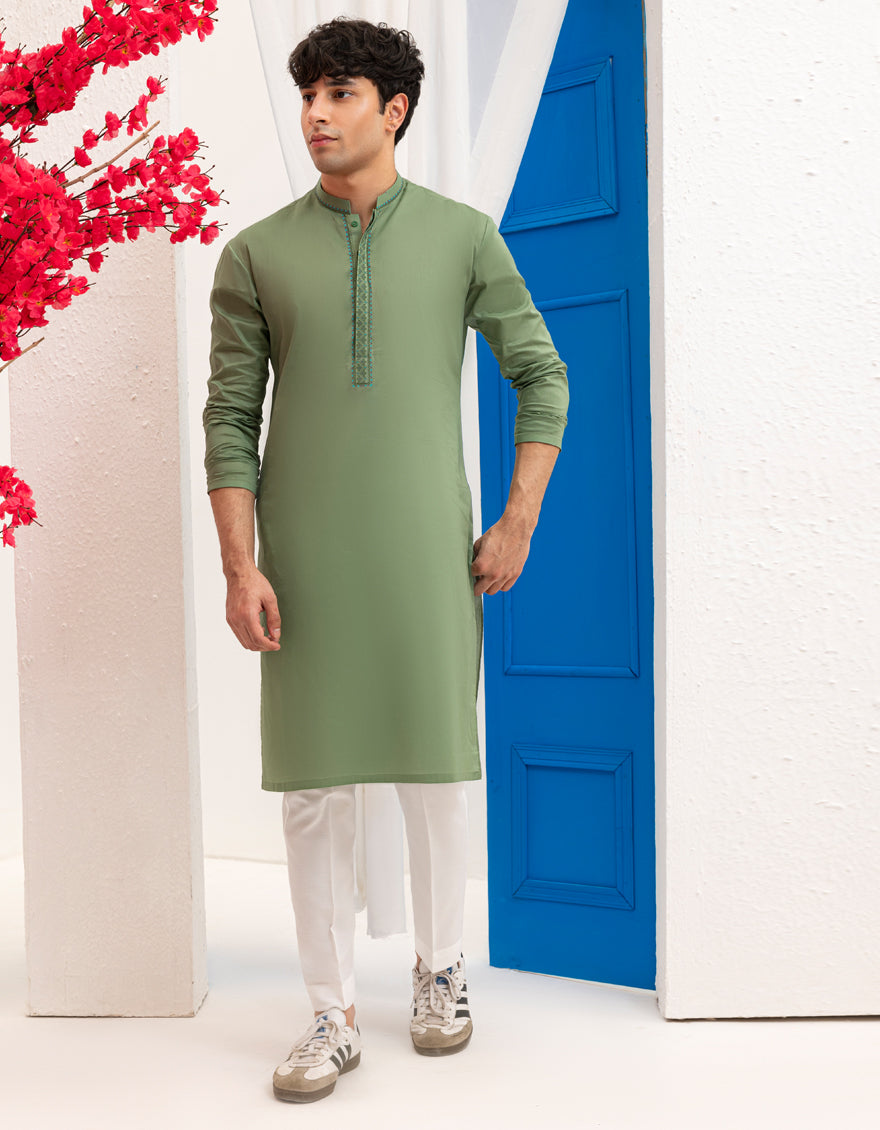 GREEN COTTON KURTA | JTK-A-46594/S25/JJ9777-SF