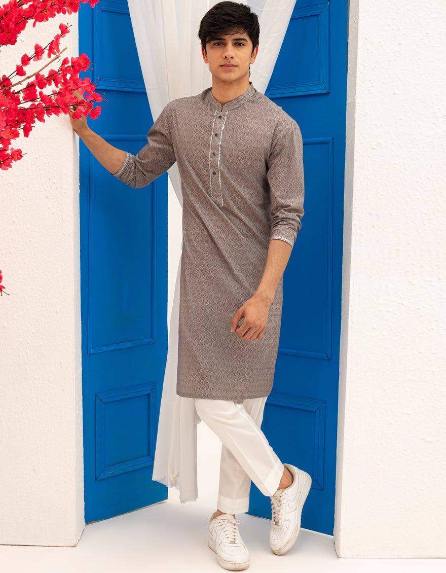 Explore our latest teen boys' Light Grey Cotton Kurta, designed with a blend of classic simplicity and Eastern charm. These kurtas offer a stylish yet understated look, suitable for a variety of occasions.
