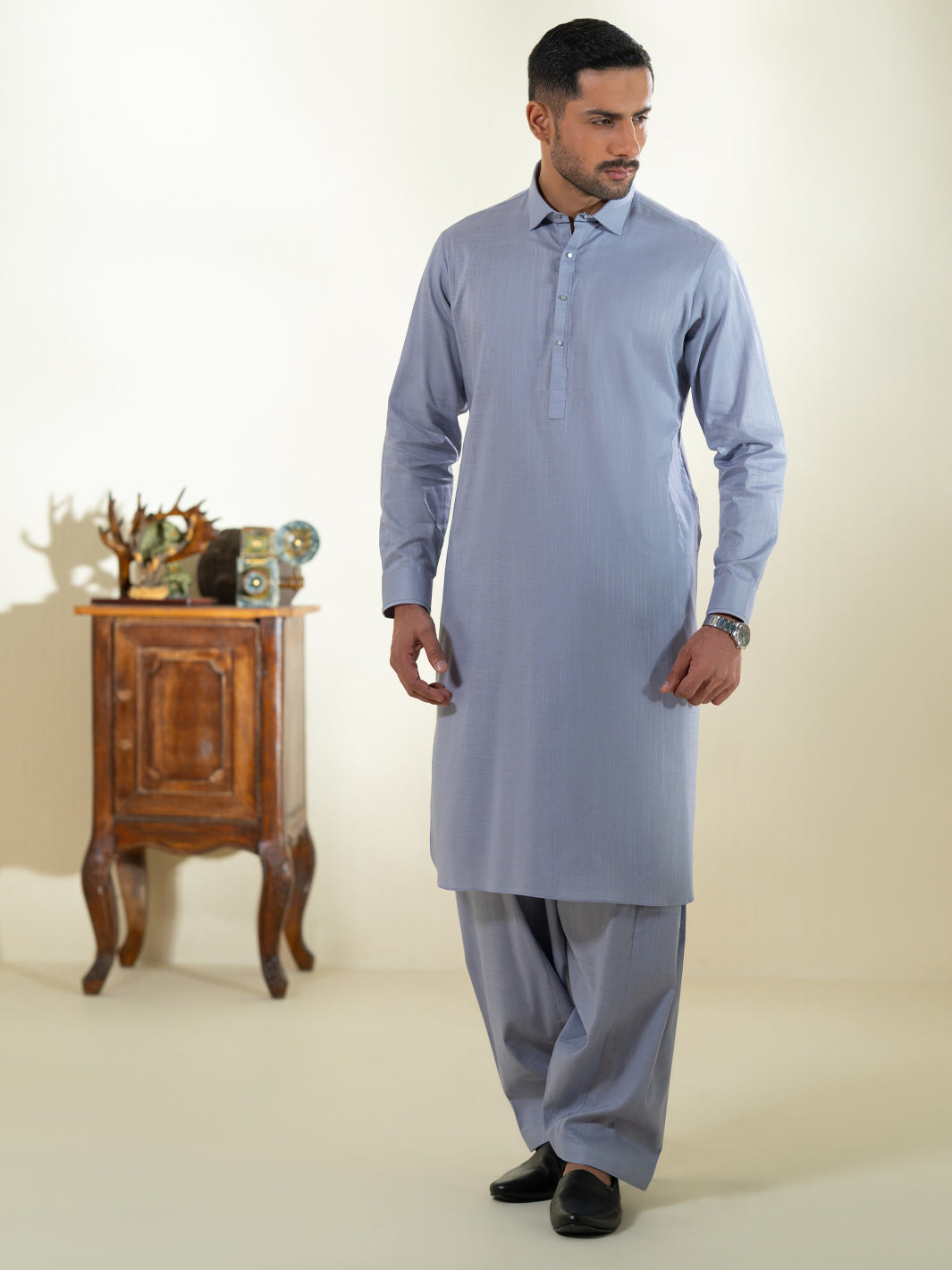 Classic Fit Kameez Shalwar Featuring Subtle Patch and Stitch Details With Premium Quality Buttons
