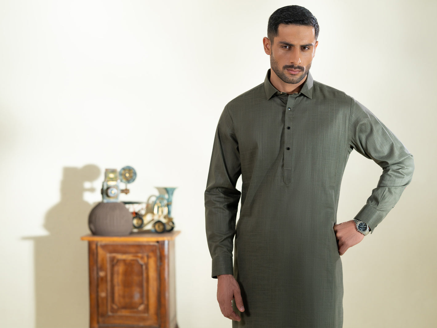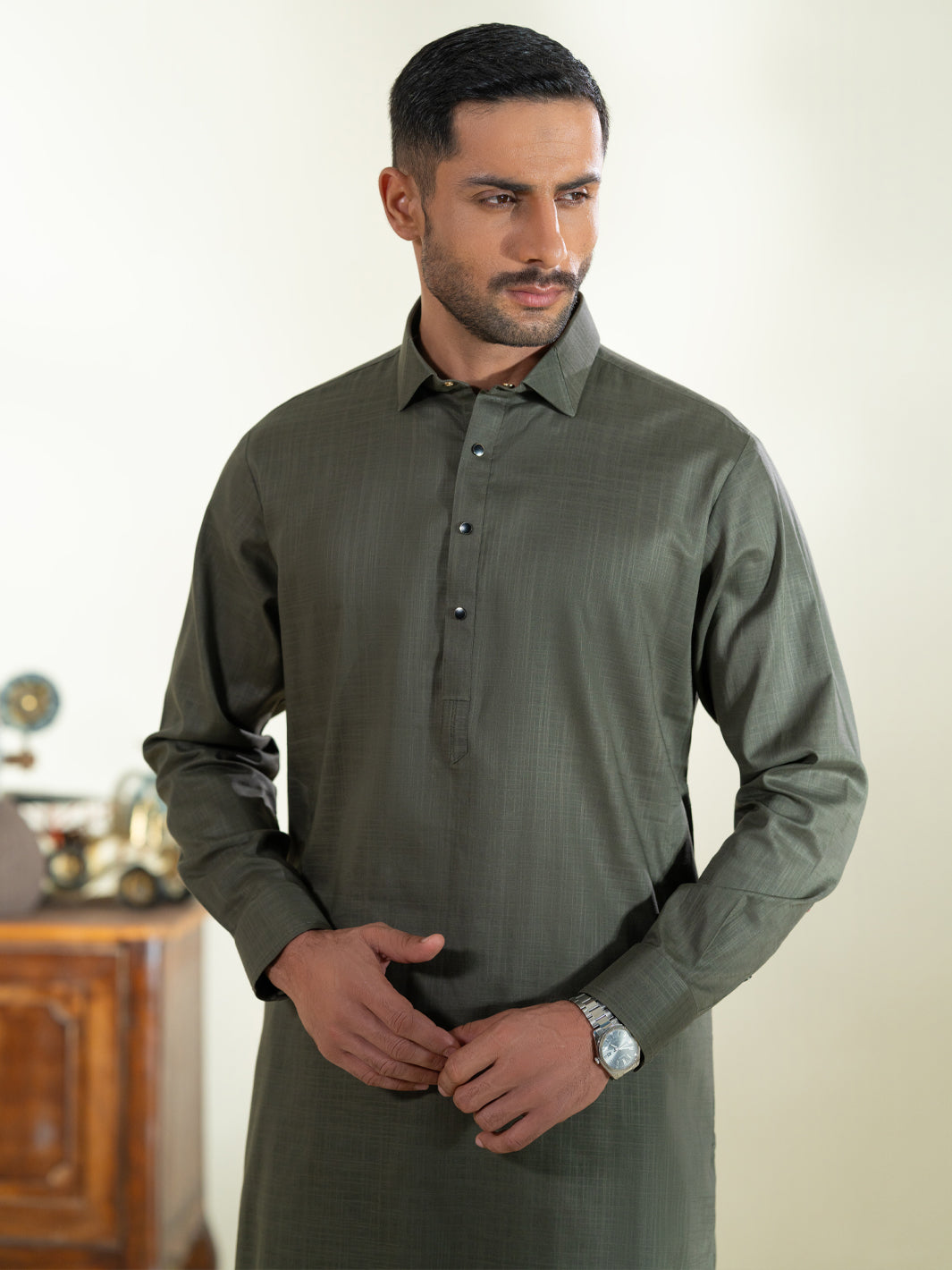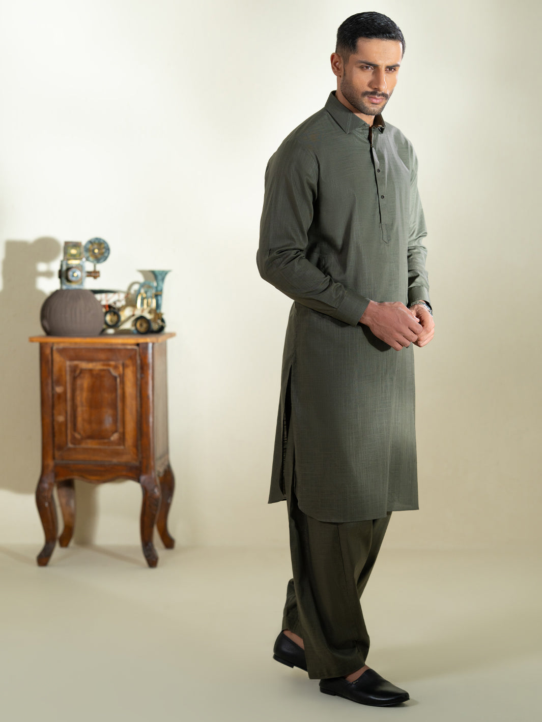 Classic Fit Kameez Shalwar Featuring Minimal Stitch Details With Premium Quality Buttons
