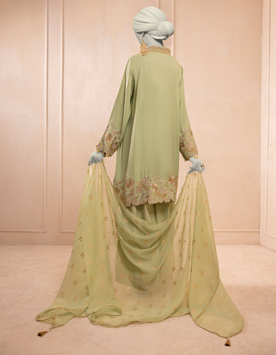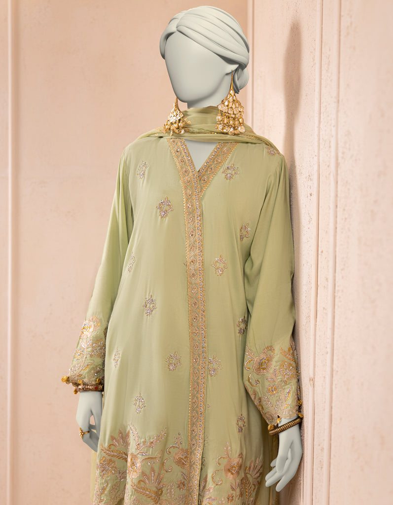GREEN ORGANZA 3PC STITCHED | JJPW-S-JPS-25-3934 F