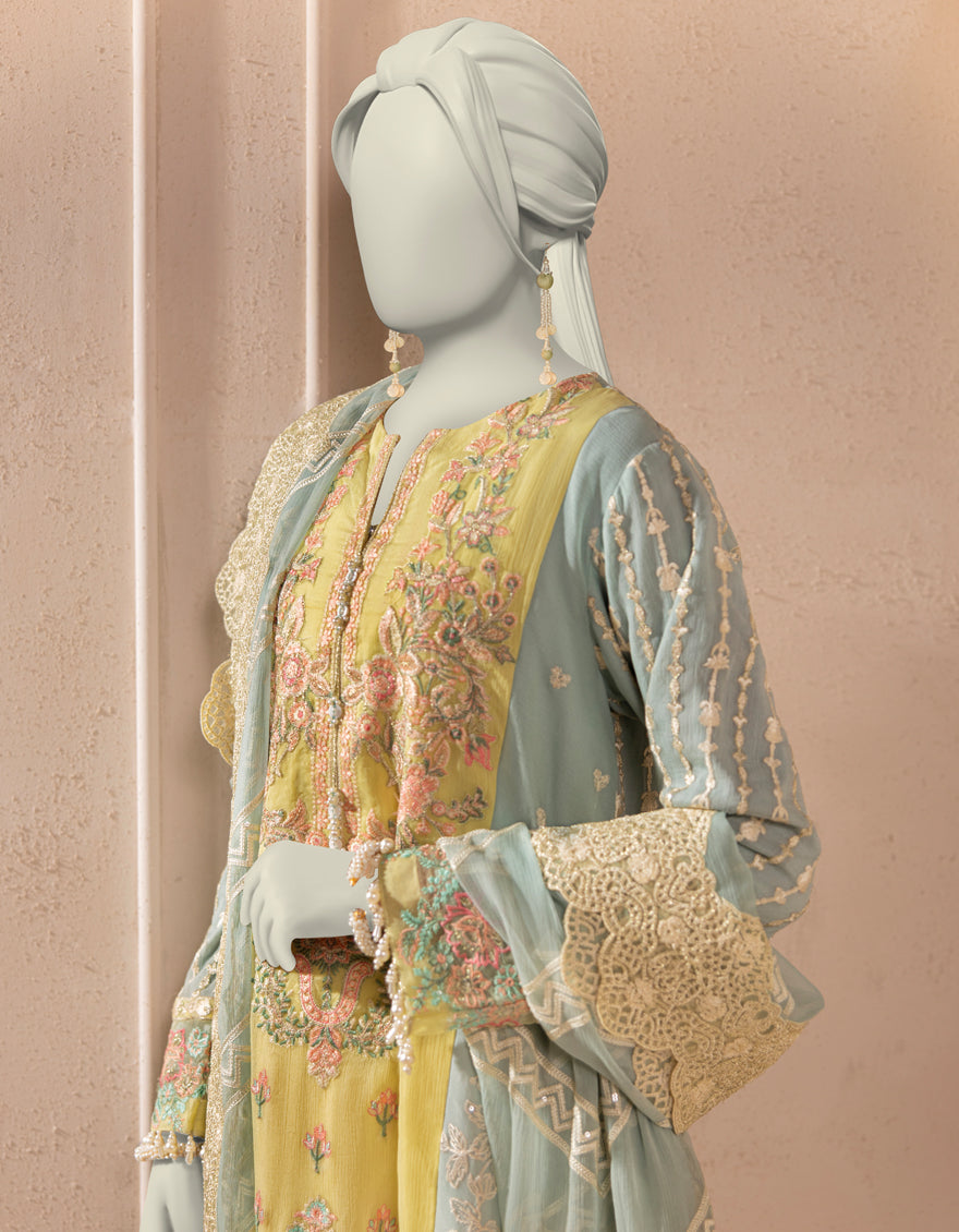 BLUE IMPURE CHIFFON 3PC STITCHED | JJPW-S-JPS-25-3936 F