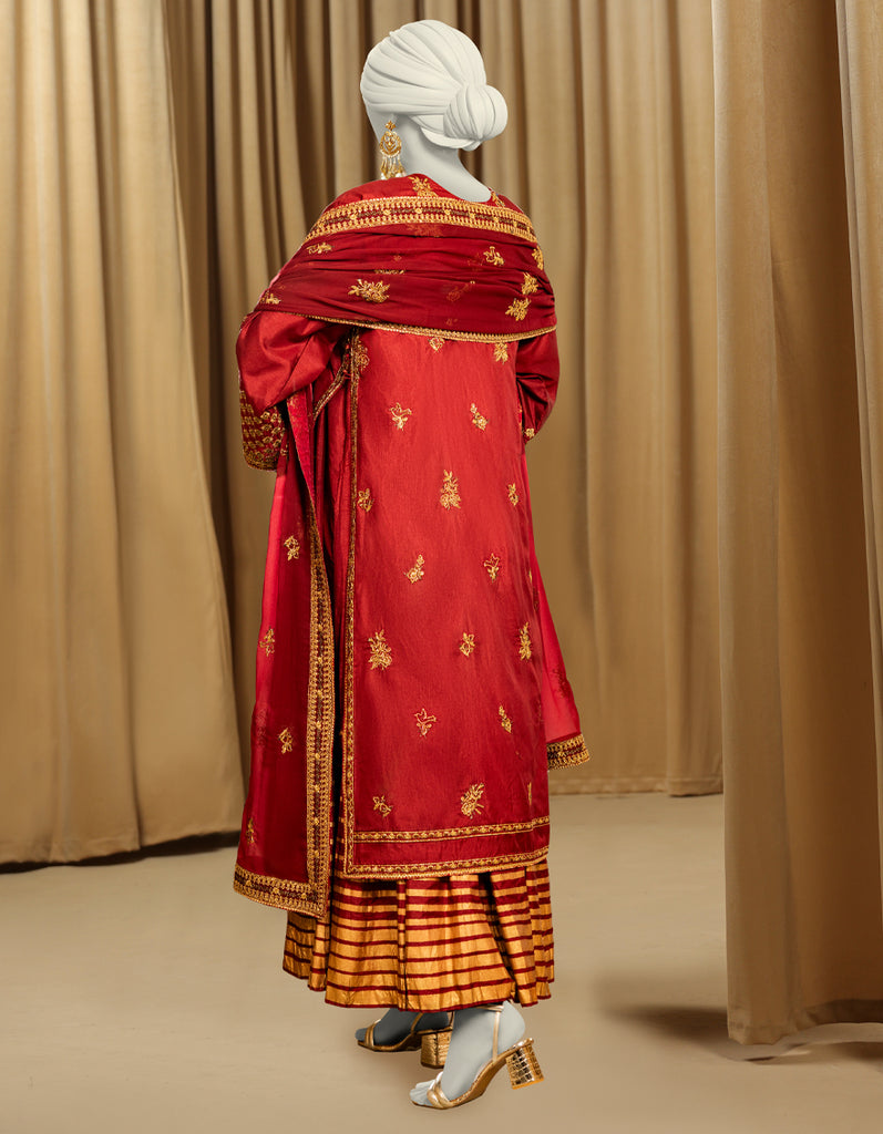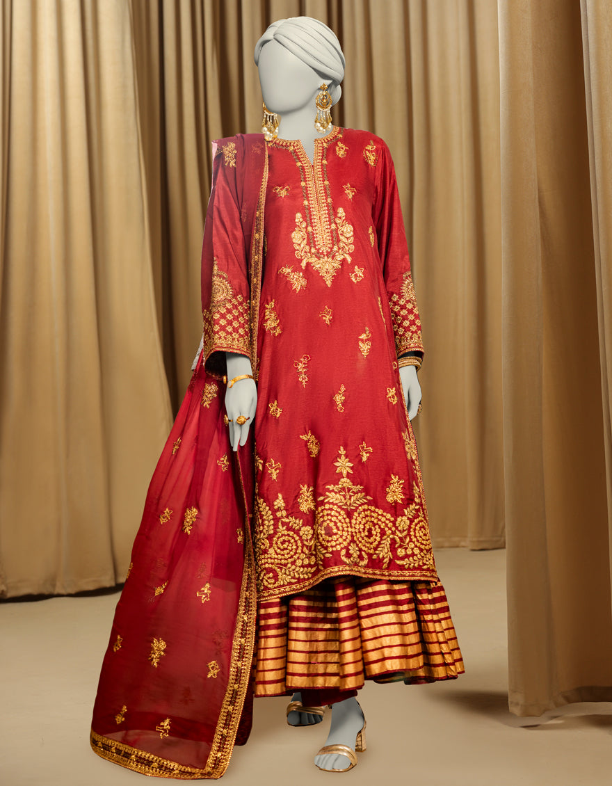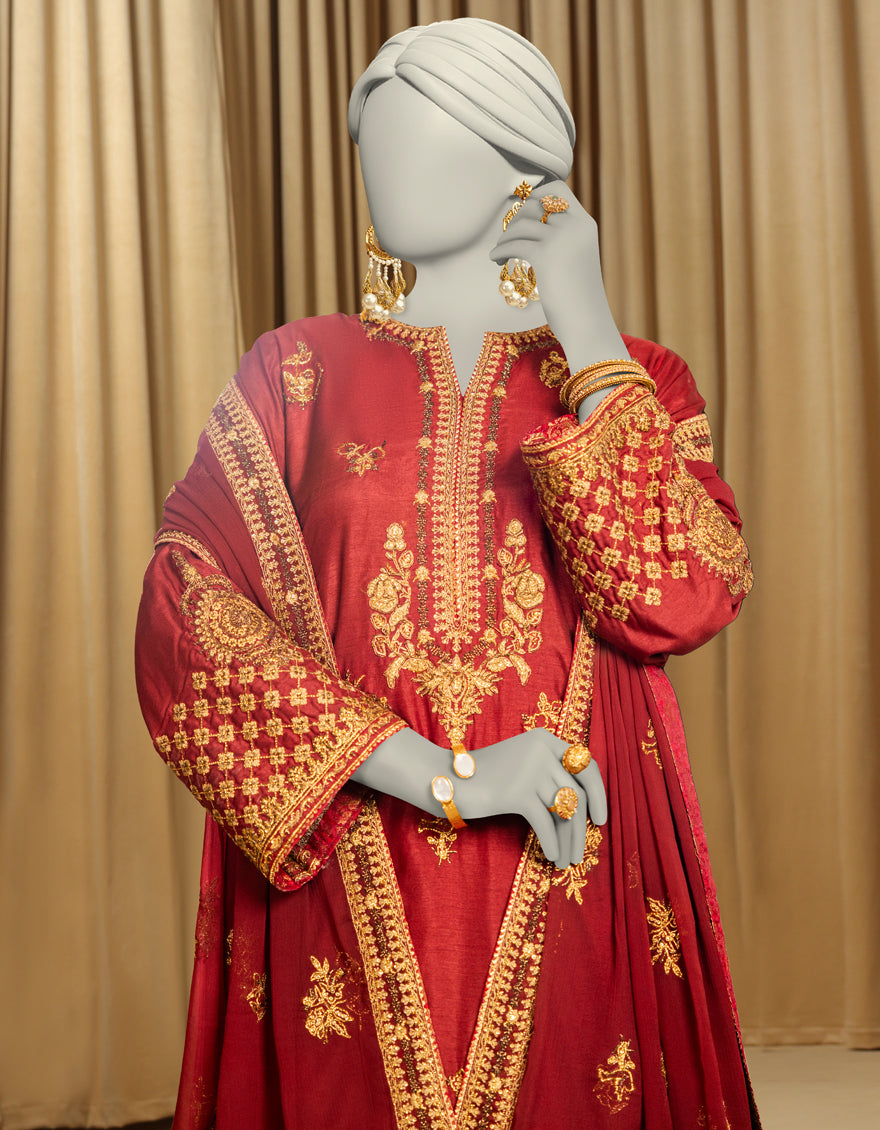 DARK MAROON RAW SILK 3PC STITCHED | JJPW-S-JPS-25-3975 FB/INARA-13