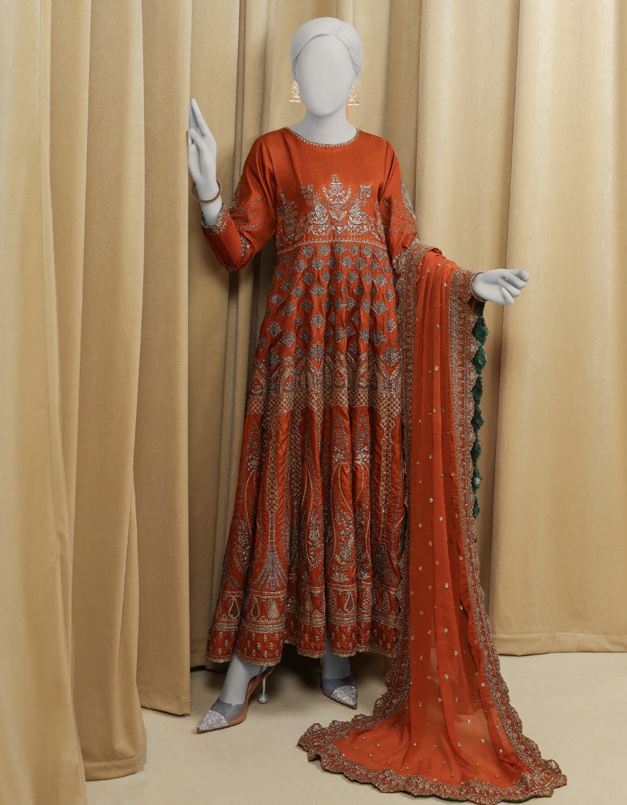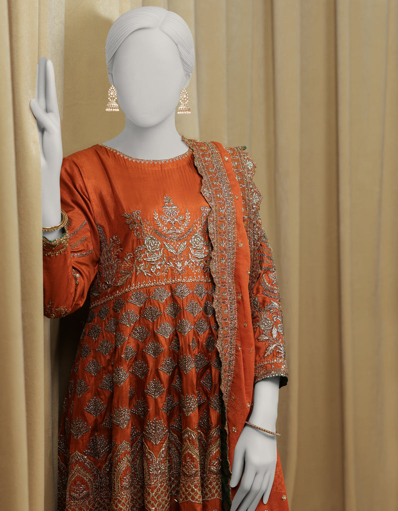 RUST RAW SILK 3PC STITCHED | JJPW-S-JPS-25-3978 FB/INARA-16