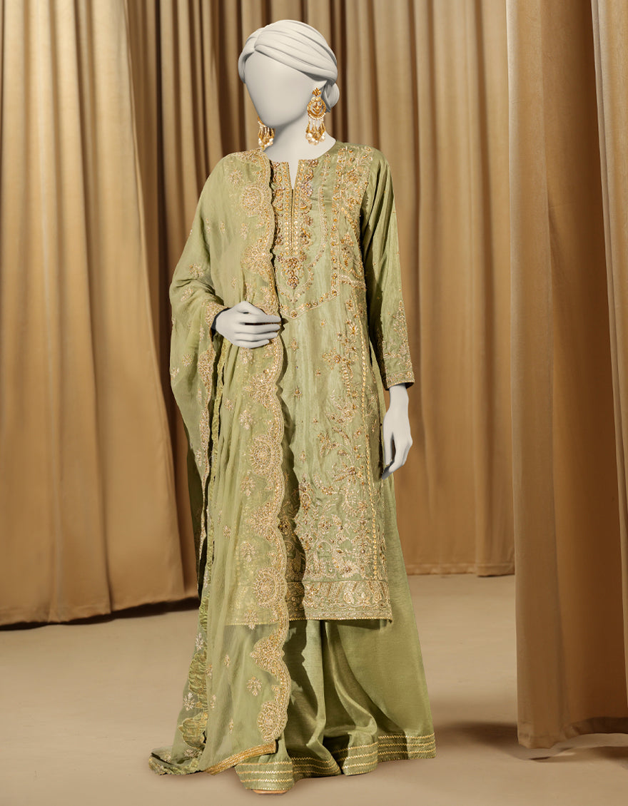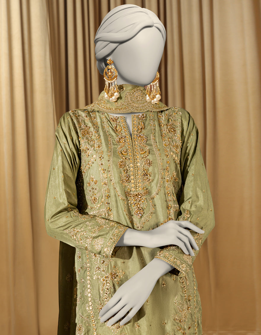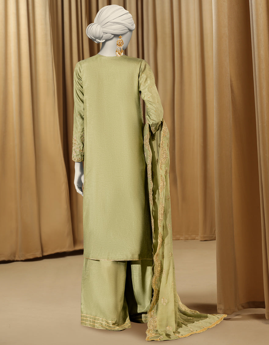 LIME GREEN RAW SILK 3PC STITCHED | JJPW-S-JPS-25-3980 FB/INARA-18