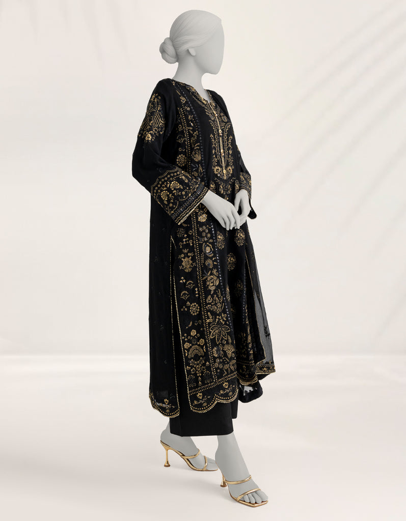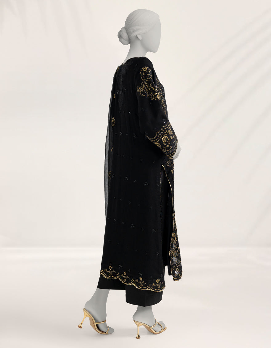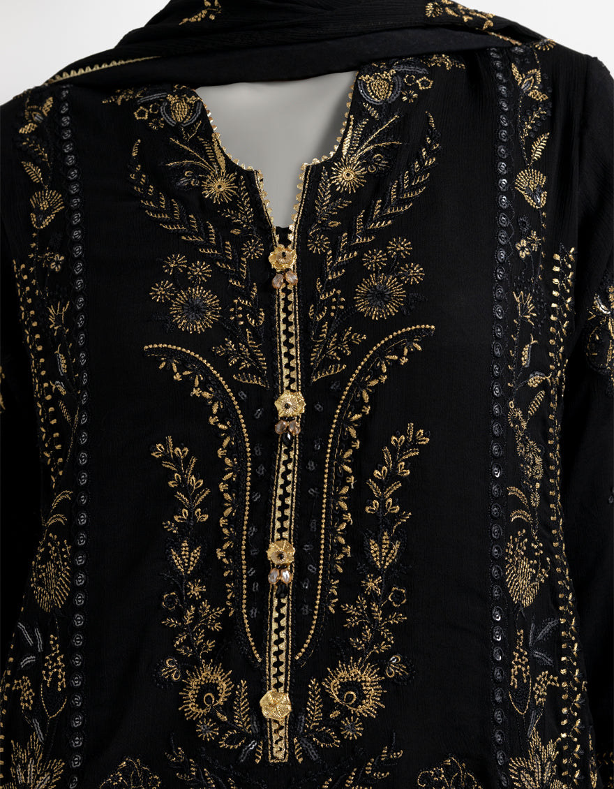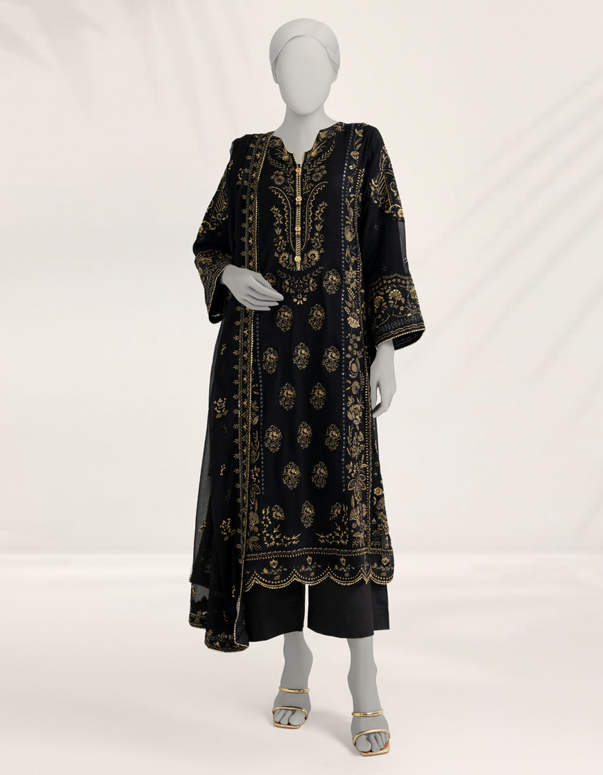 BLACK CHIFFON 3PC STITCHED | JJPW-S-JPS-25-3970 FB/DANEEN-08