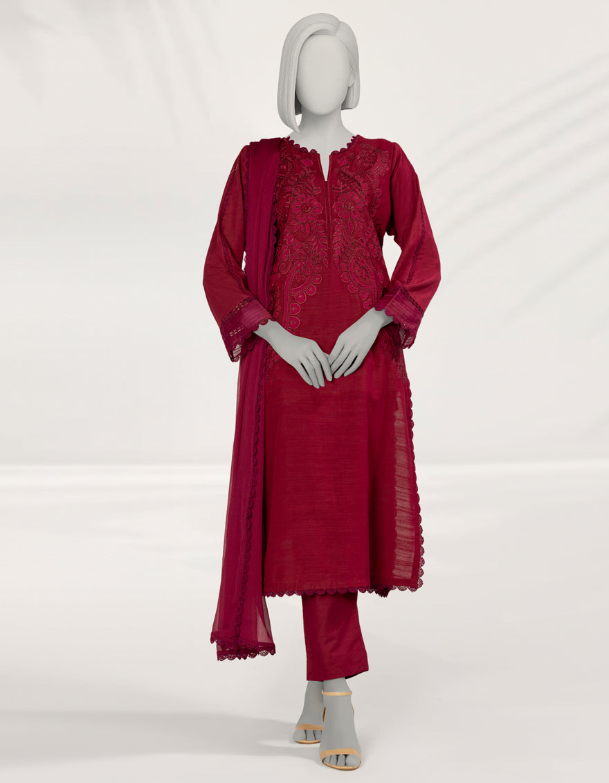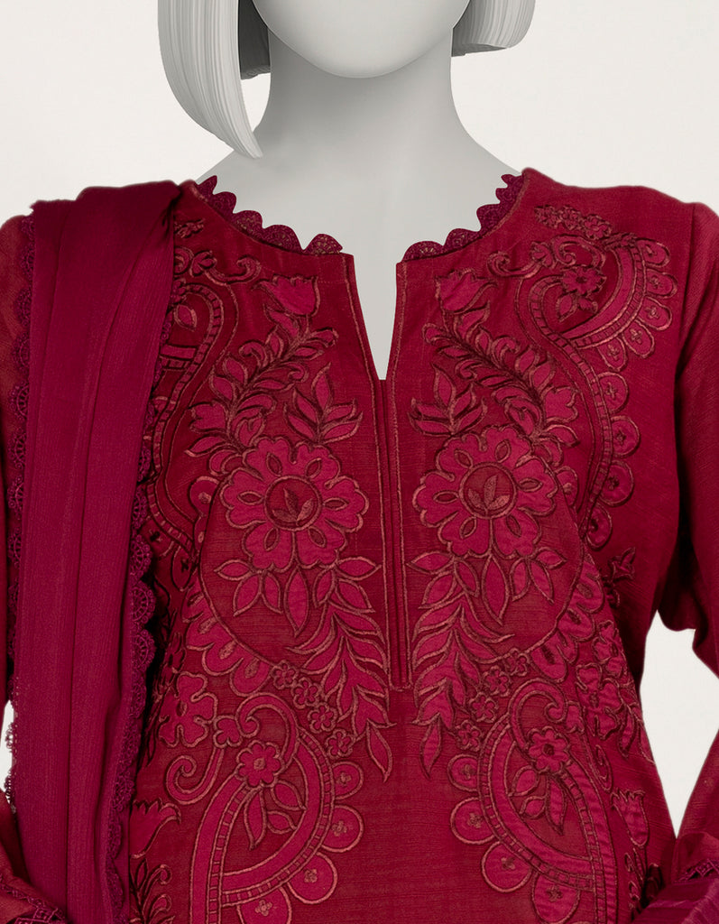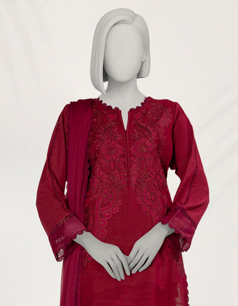 MAGENTA KHADDAR 3PC STITCHED | JLAWN-S-25-263/S DARK SHADOW-2