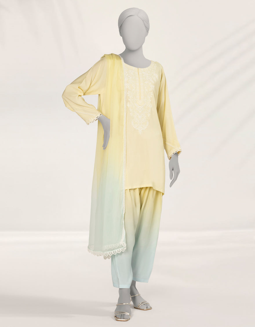 YELLOW IMPURE SILK 3PC STITCHED | JLAWN-S-25-269/S DIP DYE-04