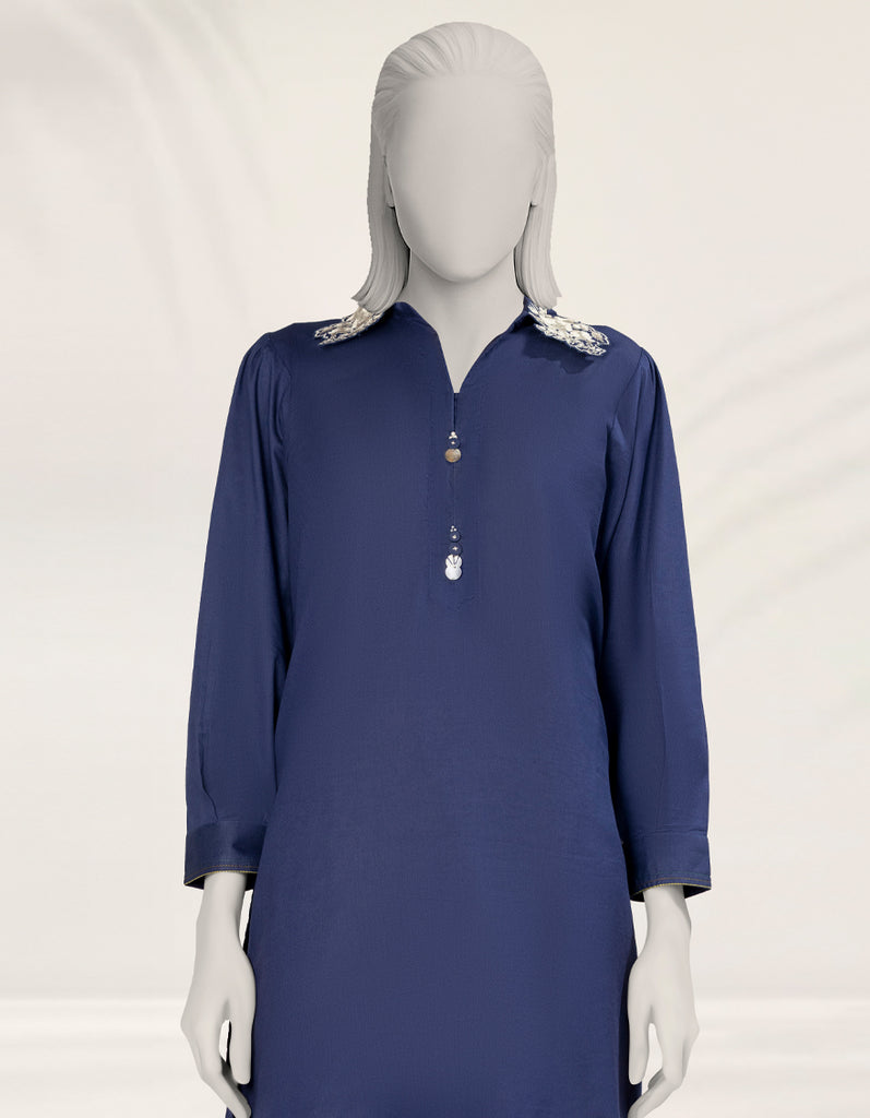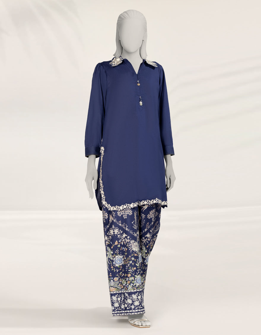 Collection: Embroidered Dyed Textured Fabric Shirt - Mill Print Basic Cambric Trouser
