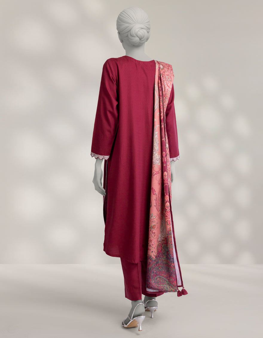 MAROON PASHMINA 3PC STITCHED | JLAWN-W-25-307/S KASHMIRI-03
