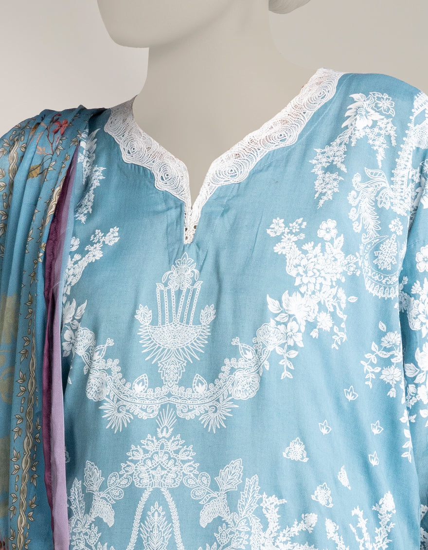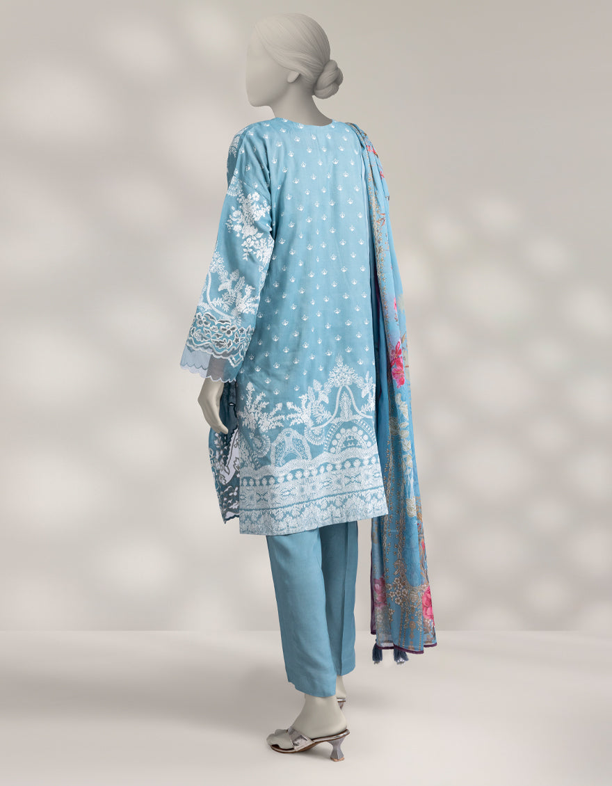 GREEN MAPLE SILK 3PC STITCHED | JLAWN-W-25-331/S DAMASK-03