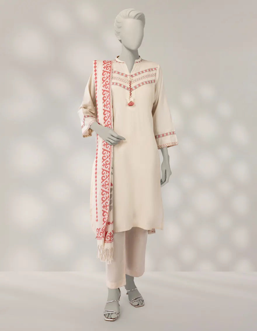 CREAM JACQUARD 3PC STITCHED | JLAWN-W-25-354/S RALLI-05