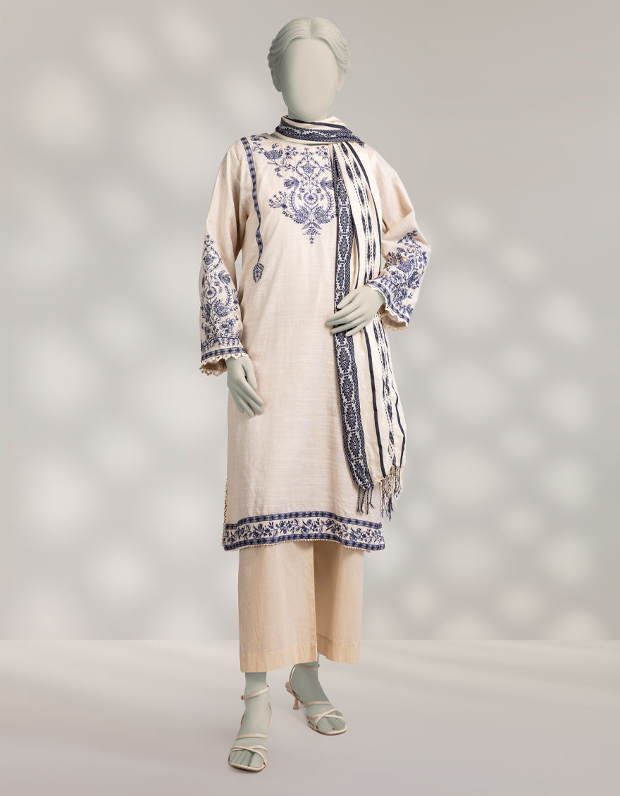 CREAM KHADDAR 2PC STITCHED | JLAWN-W-JDS-25-1176/S SEQUINS-1