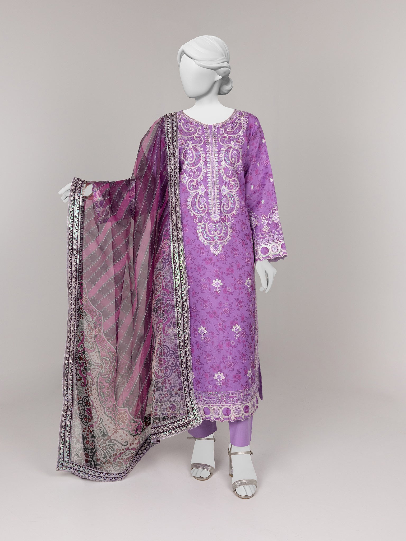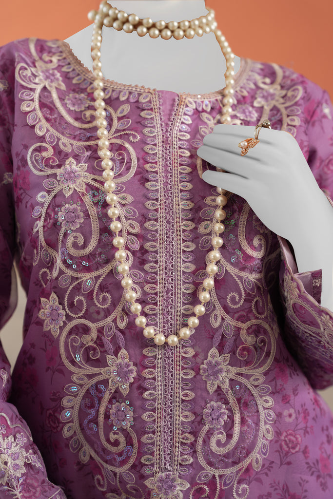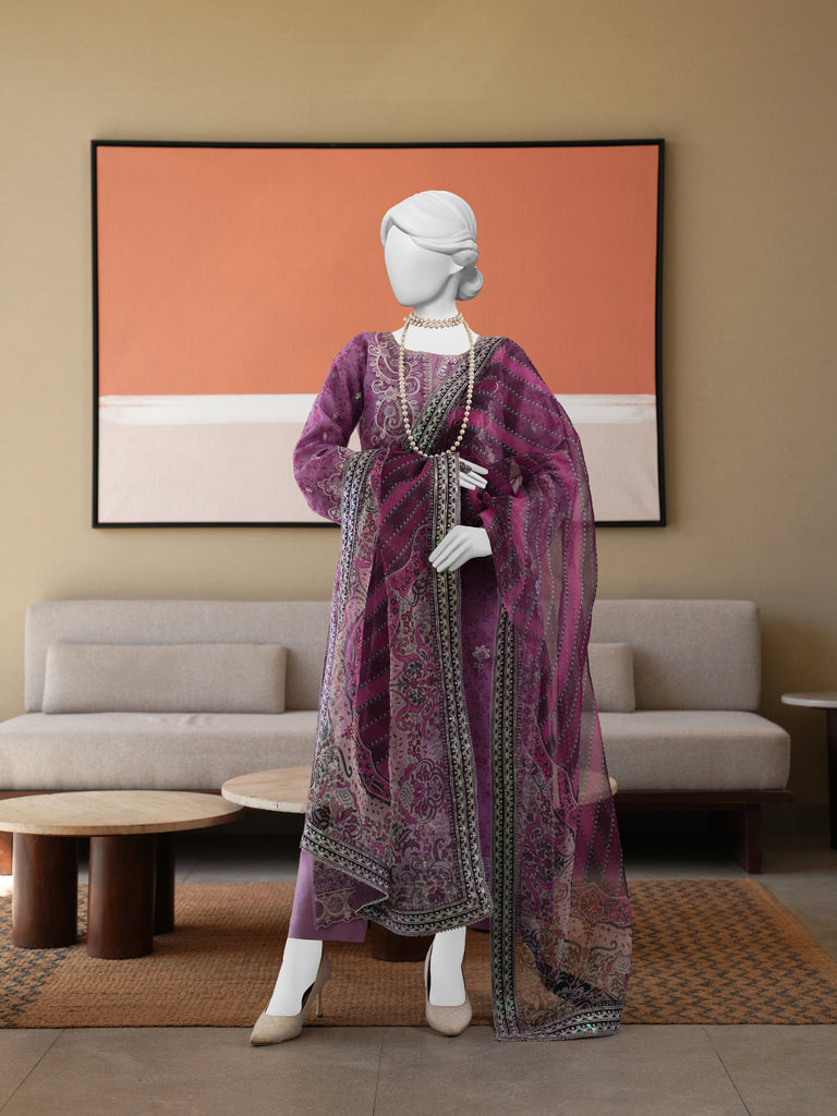 PURPLE ORGANZA 3PC STITCHED | PJPWS-990827