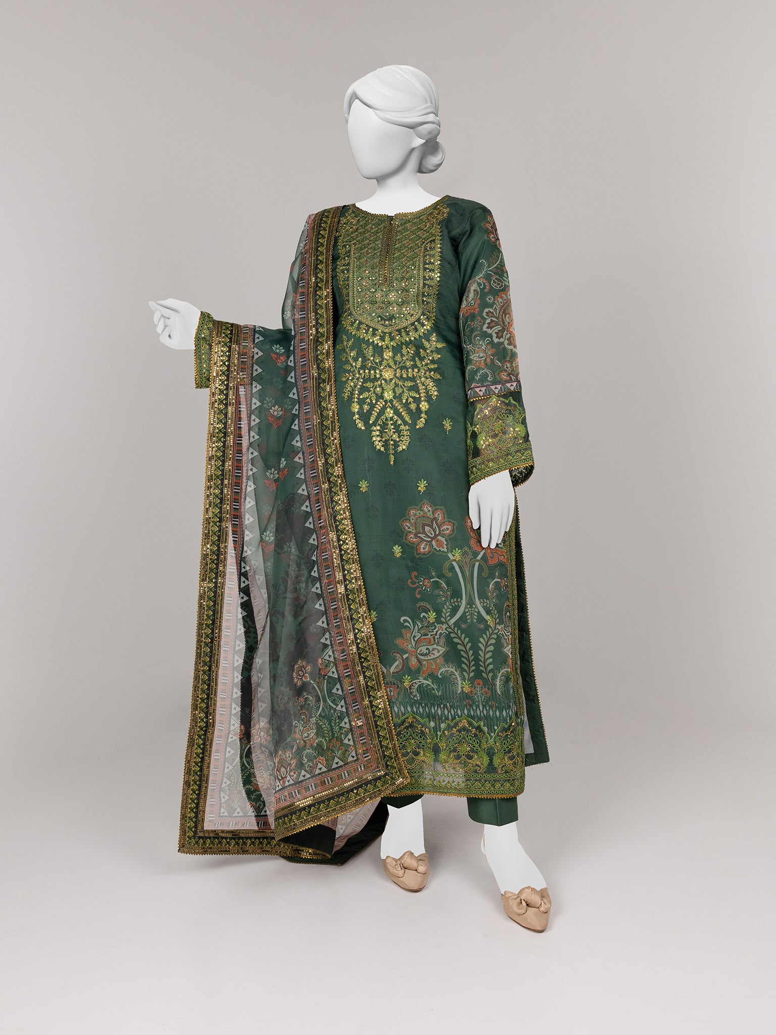 GREEN ORGANZA 3PC STITCHED | PJPWS-990830