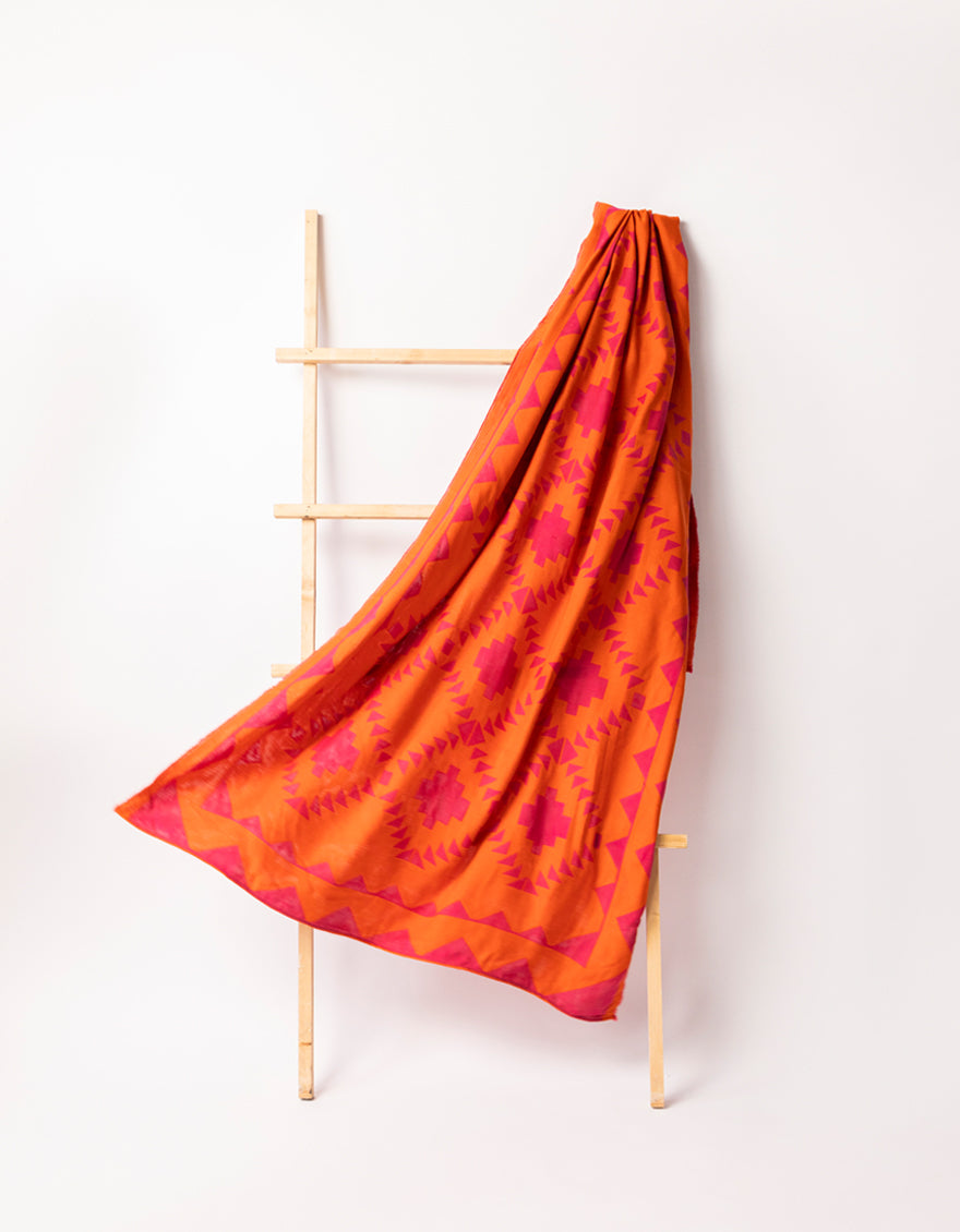 ORANGE JACQUARD SHAWL | JSH-JSHW-25-4903 FB/GEOMETEIC SHAWL-03