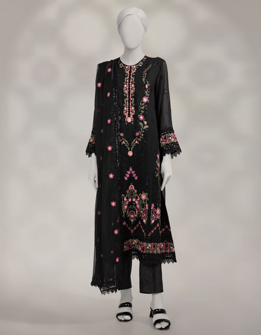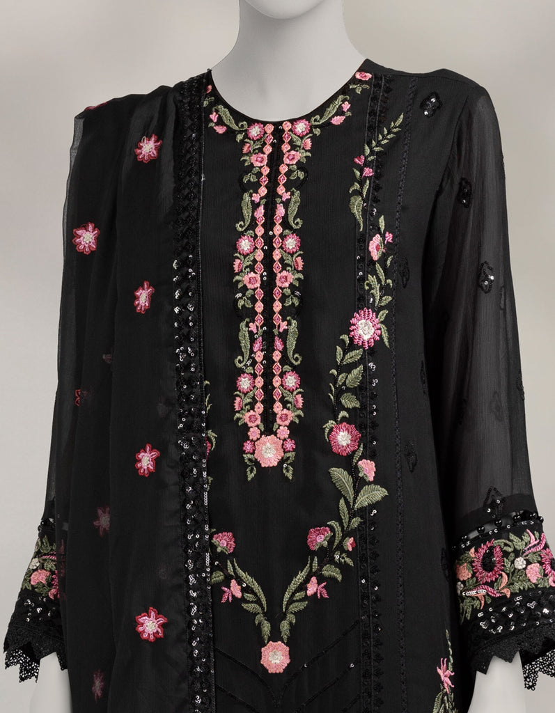BLACK CHIFFON 3PC UNSTITCHED | JJLS-W-JFU-25-714 FB/FALAK-06