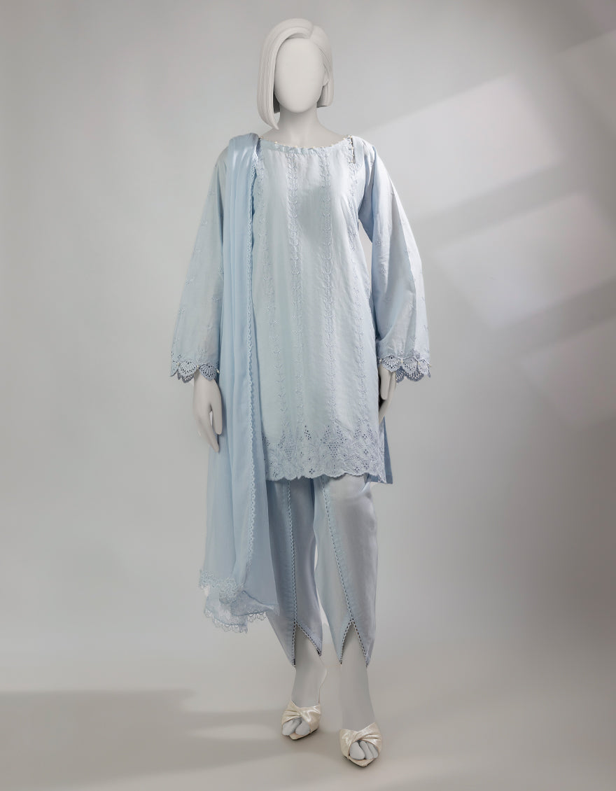 BLUE LAWN 3PC STITCHED | JLAWN-S-25-239/S CHIKENKARI-02