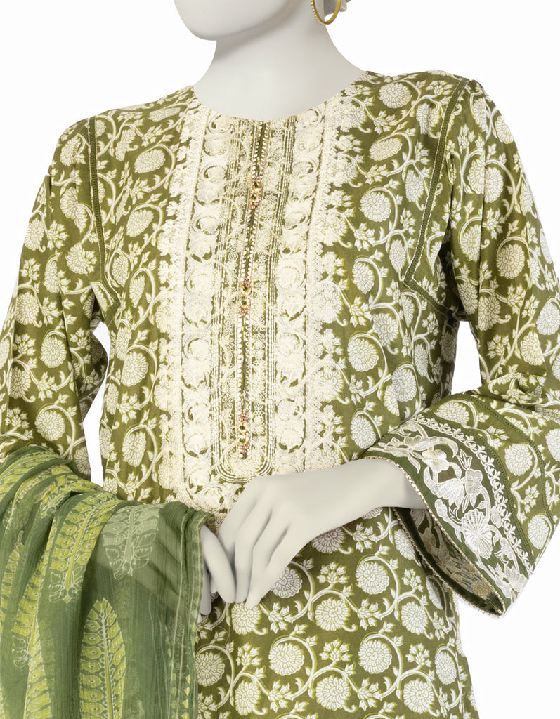 Collection: Embroidered & Printed Lawn Shirt, Dyed Lawn Trouser, Printed Chiffon Dupatta