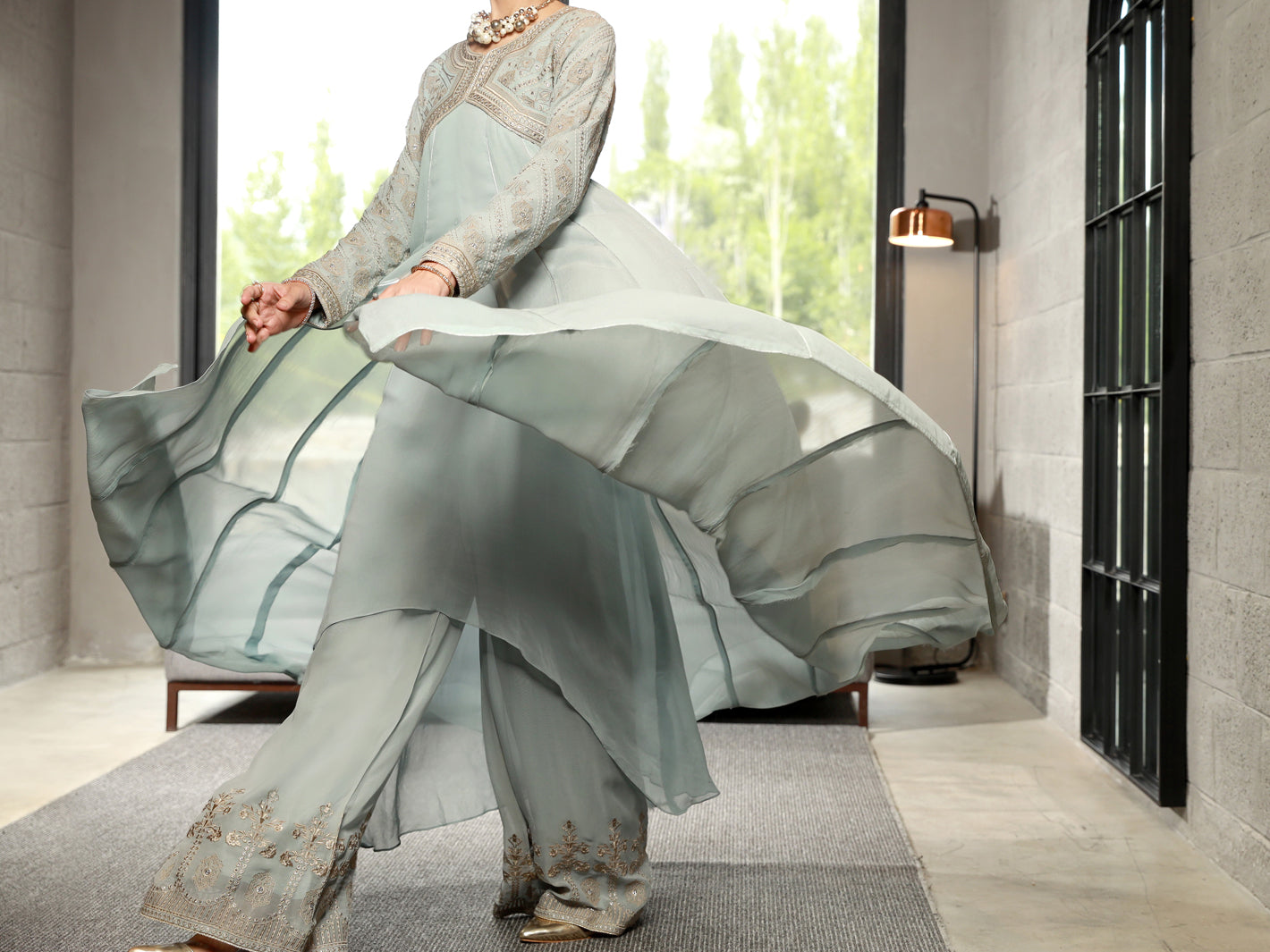GREY GEORGETTE 2PC STITCHED | AL-2PS-LS-US-334/AM-2490A