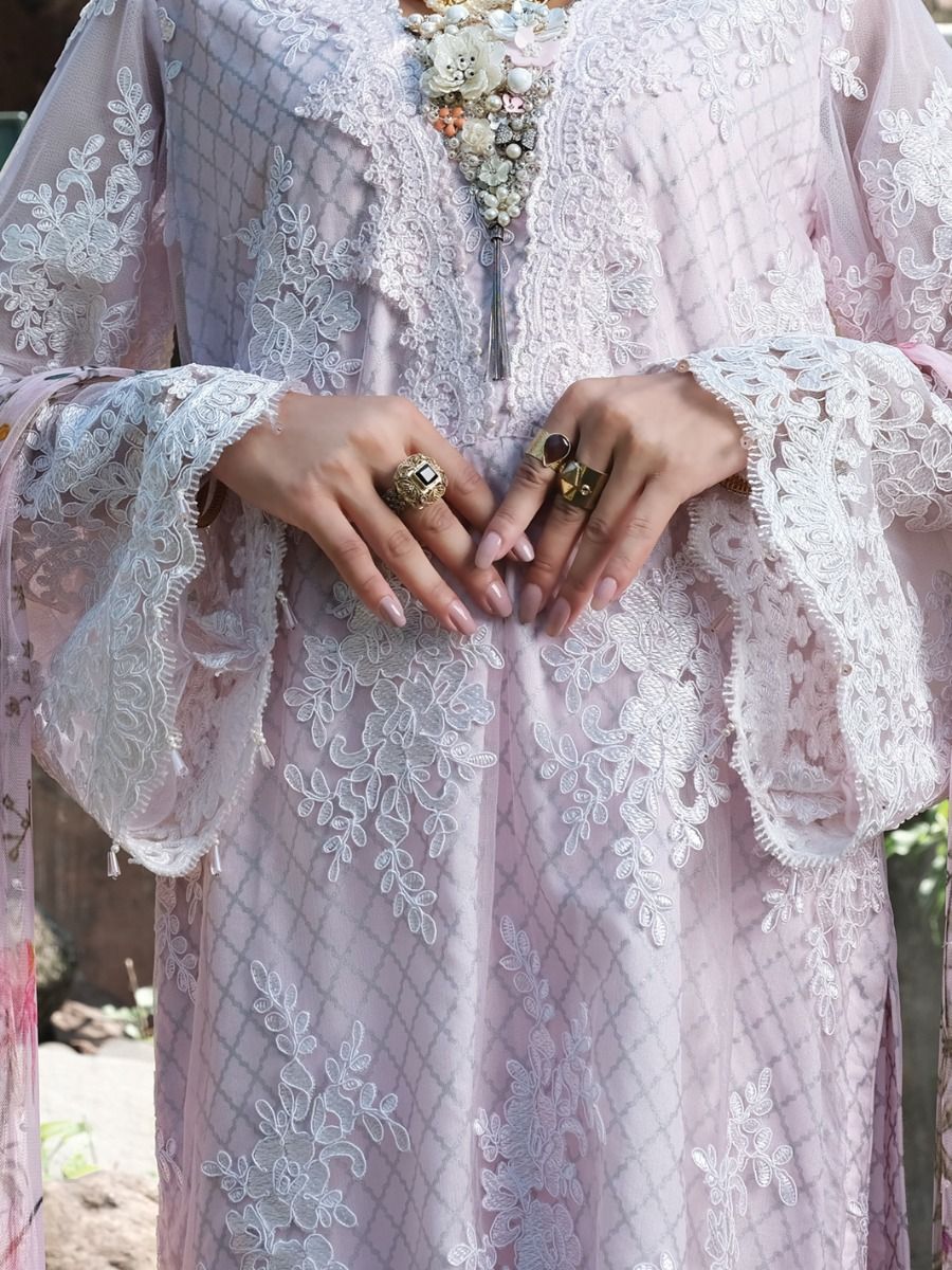 PINK NET 3PC UNSTITCHED | AL-3PS-LS-UN-US-301 V-4 2020