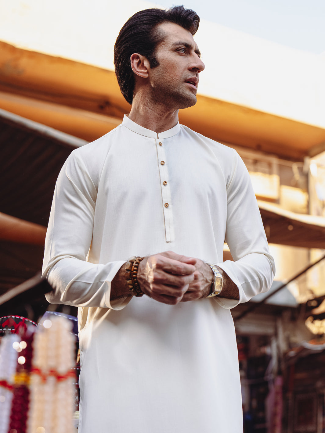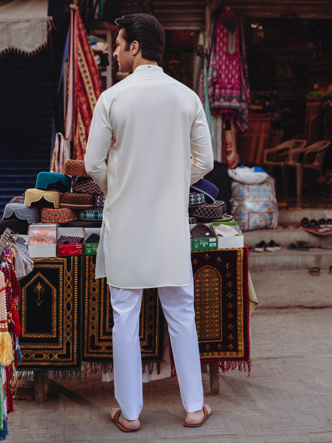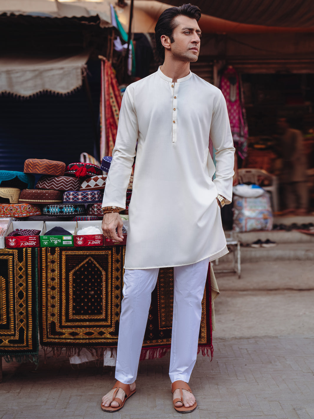 OFF WHITE BLENDED KURTA | AL-K-1259/AM-6314A