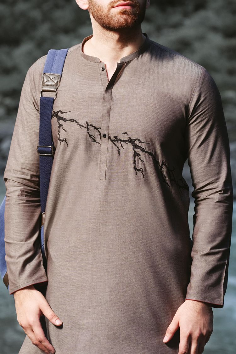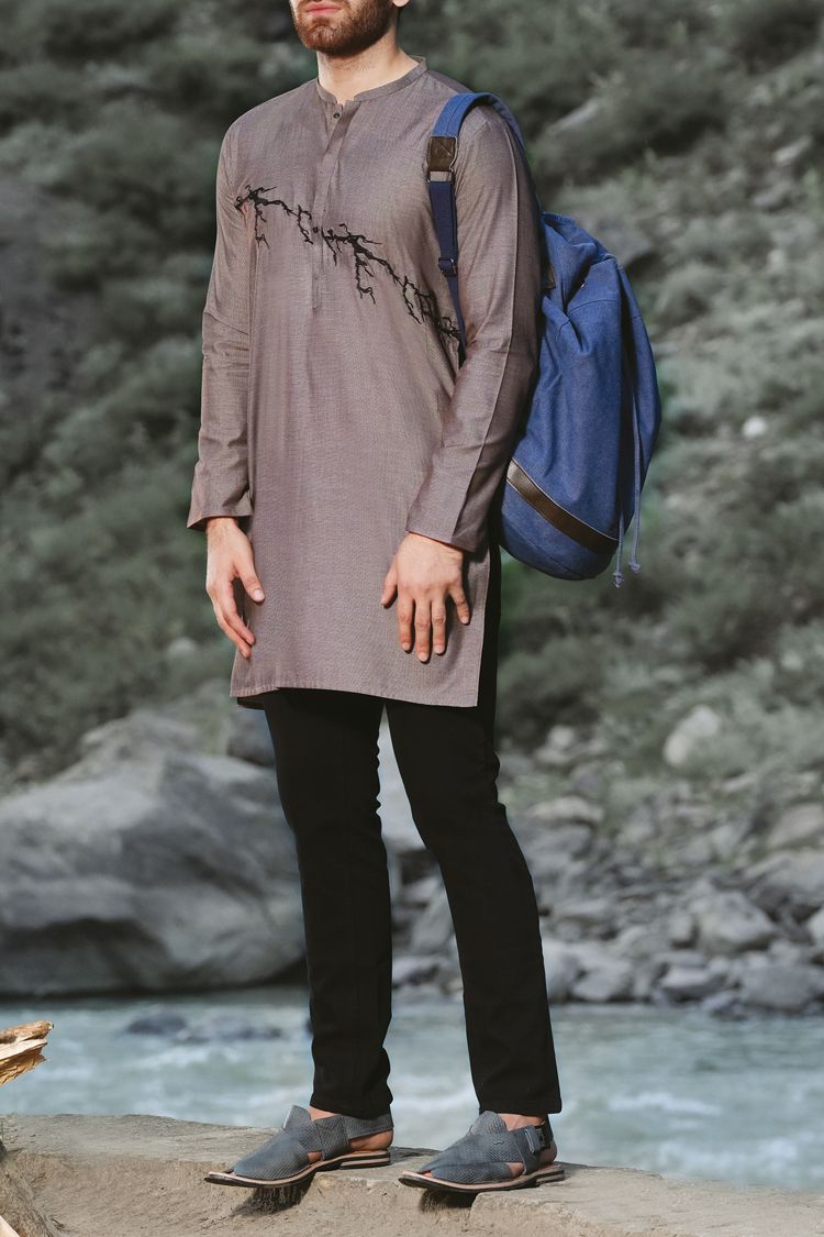 Cuts And Sew Kurta Stitched In Blended Fabric With Embroidered Details