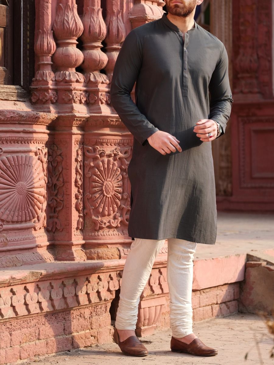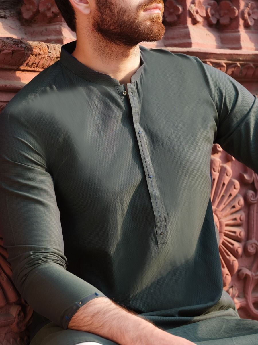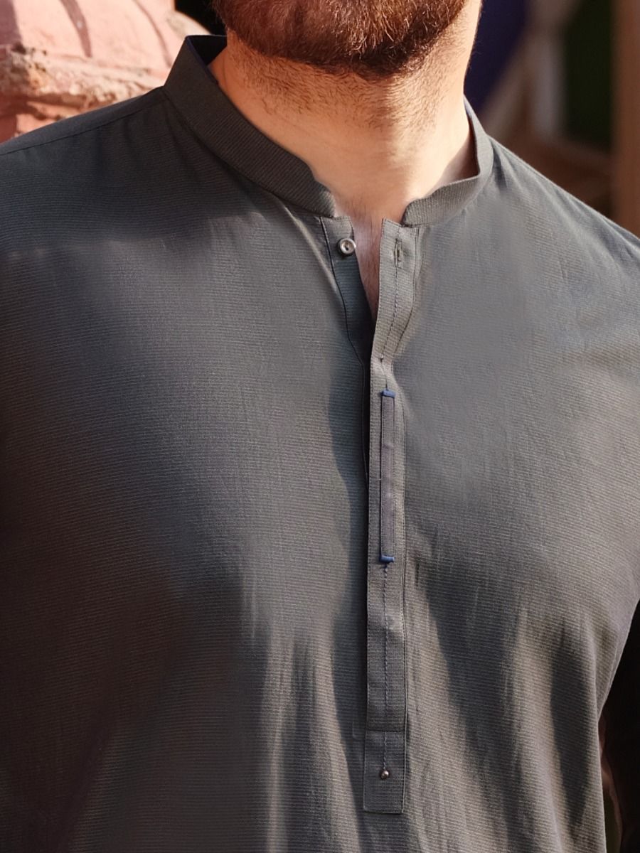 Cut And Sew Kurta Stitched In Blended Fabric With Detail On Placket.