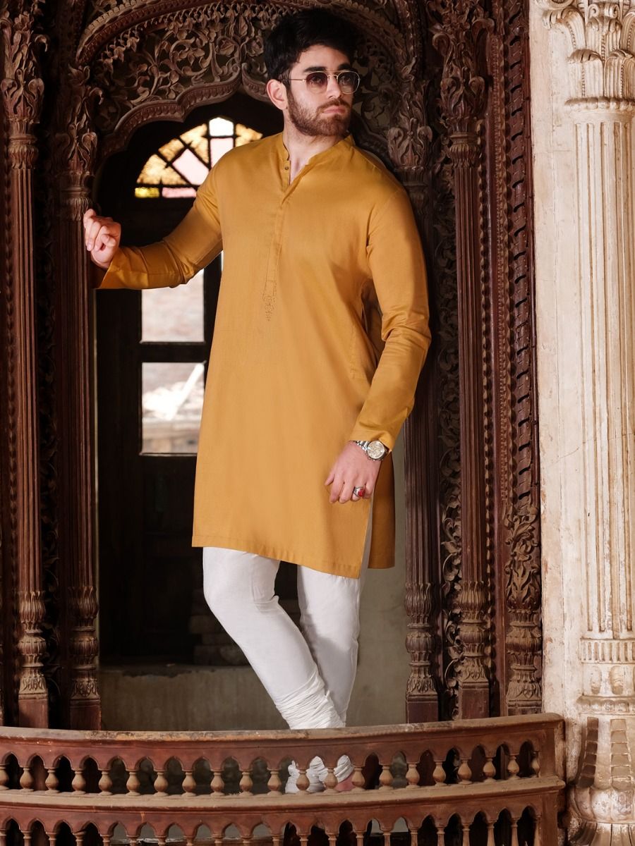 YELLOW COTTON KURTA | AL-K-US-857/AM-780-1B