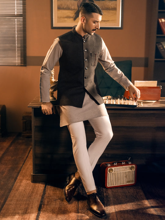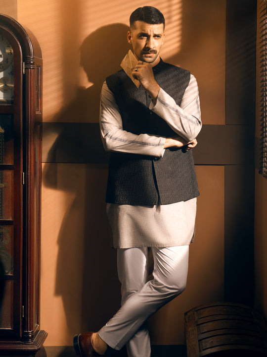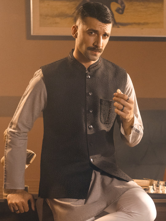 Textured Fabric Waistcoat With Front Pocket And Accent Patch