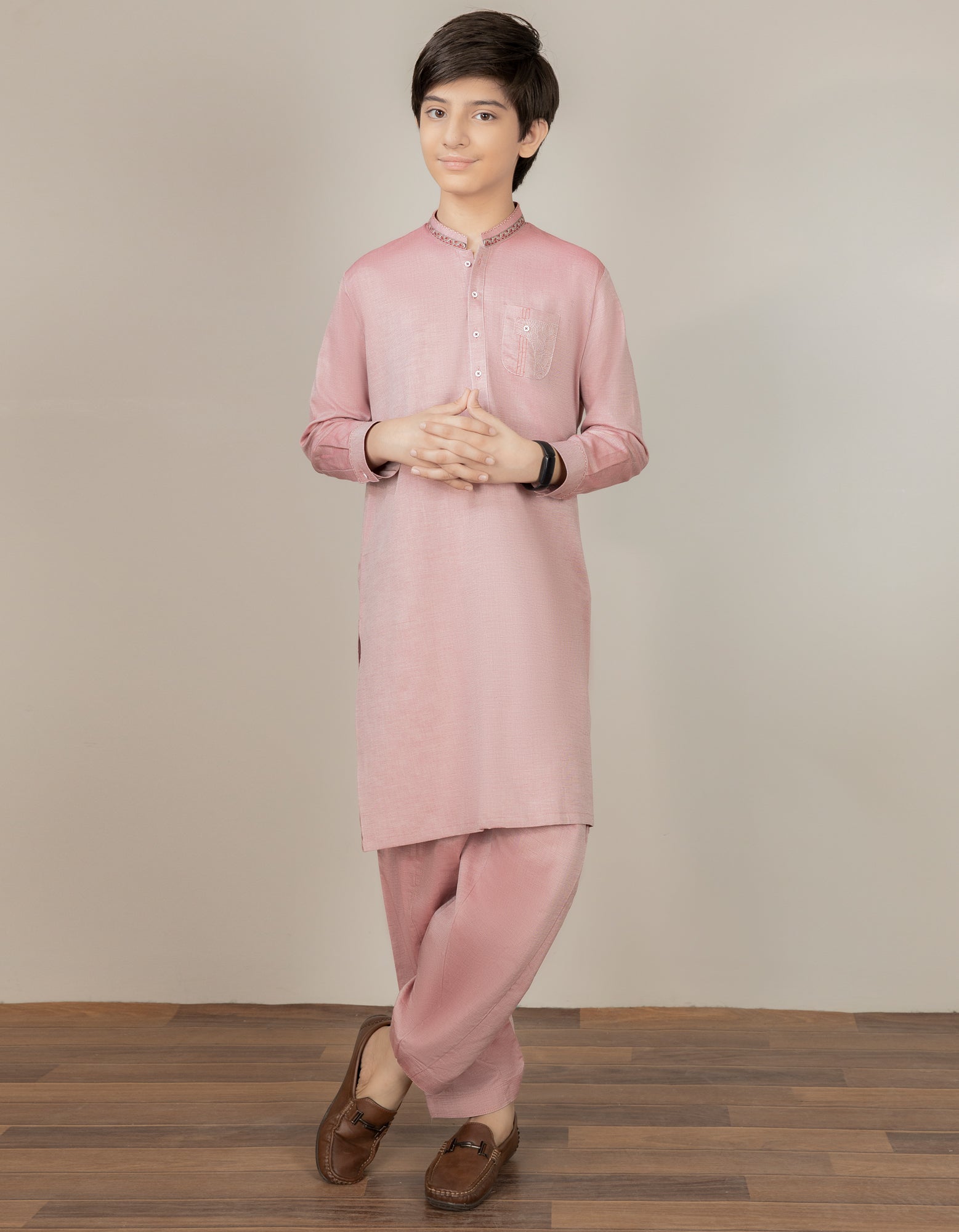 Casual Suit For Kid, With Computerized Embroidery On Collar Pocket And Cuff