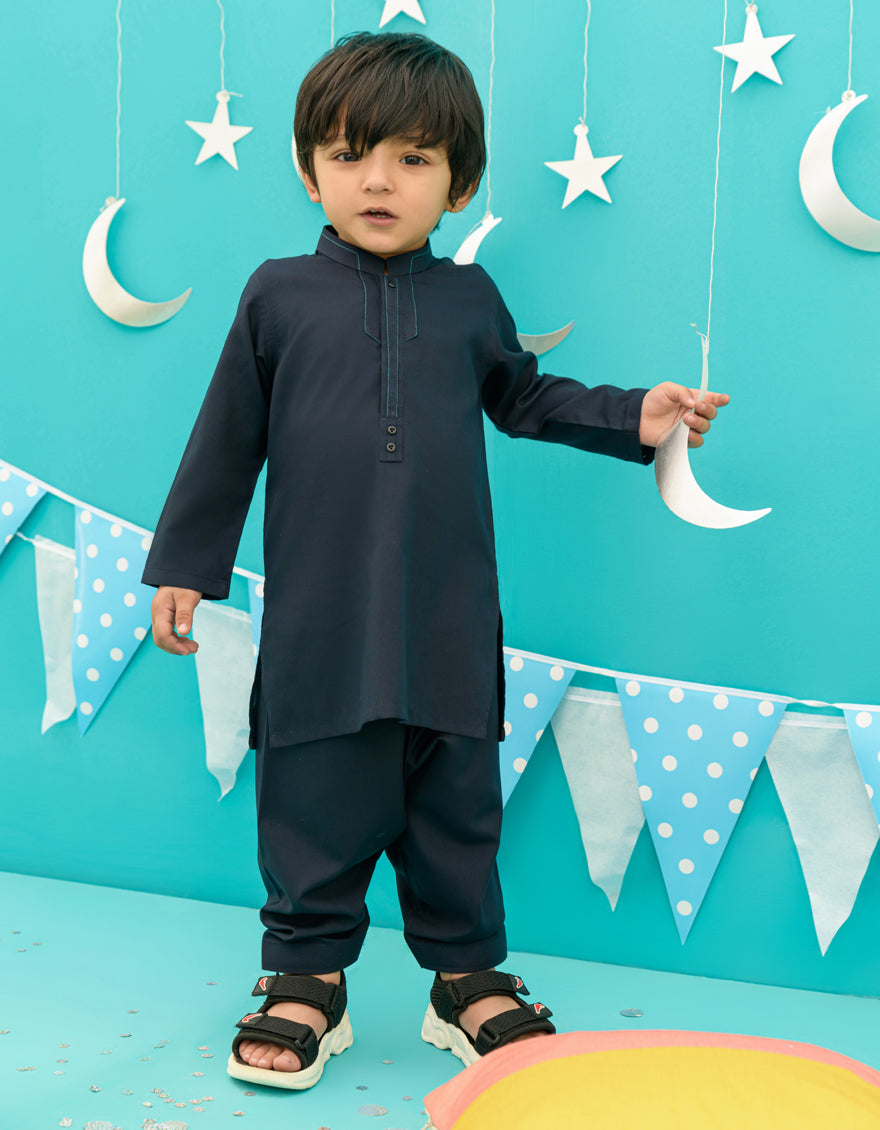 NAVY BLUE BLENDED KAMEEZ SHALWAR | JJIKS-US-43247/A23/JJ8790-CL