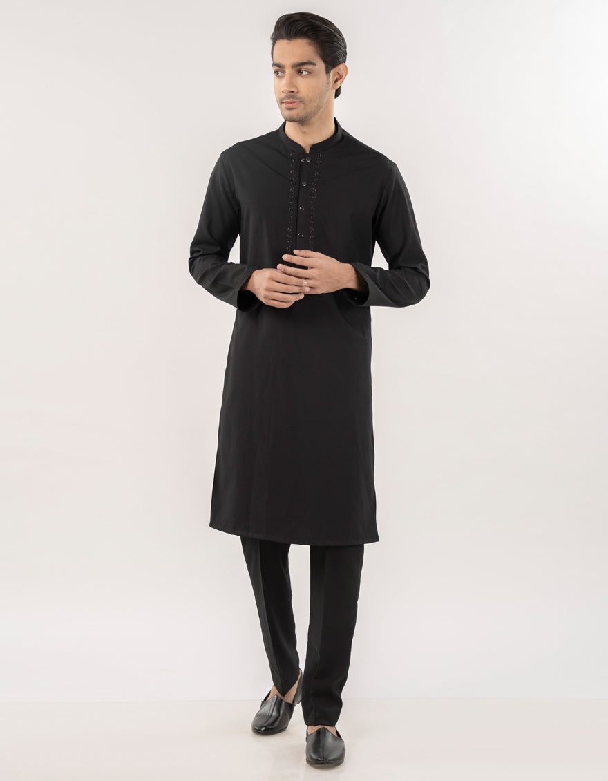 Designed to perfection, this Black Blended Kurta Trouser is a must-have for every one's wardrobe. Its classic style and versatility make it suitable for a variety of occasions, ensuring that you always looks stylish and sophisticated.