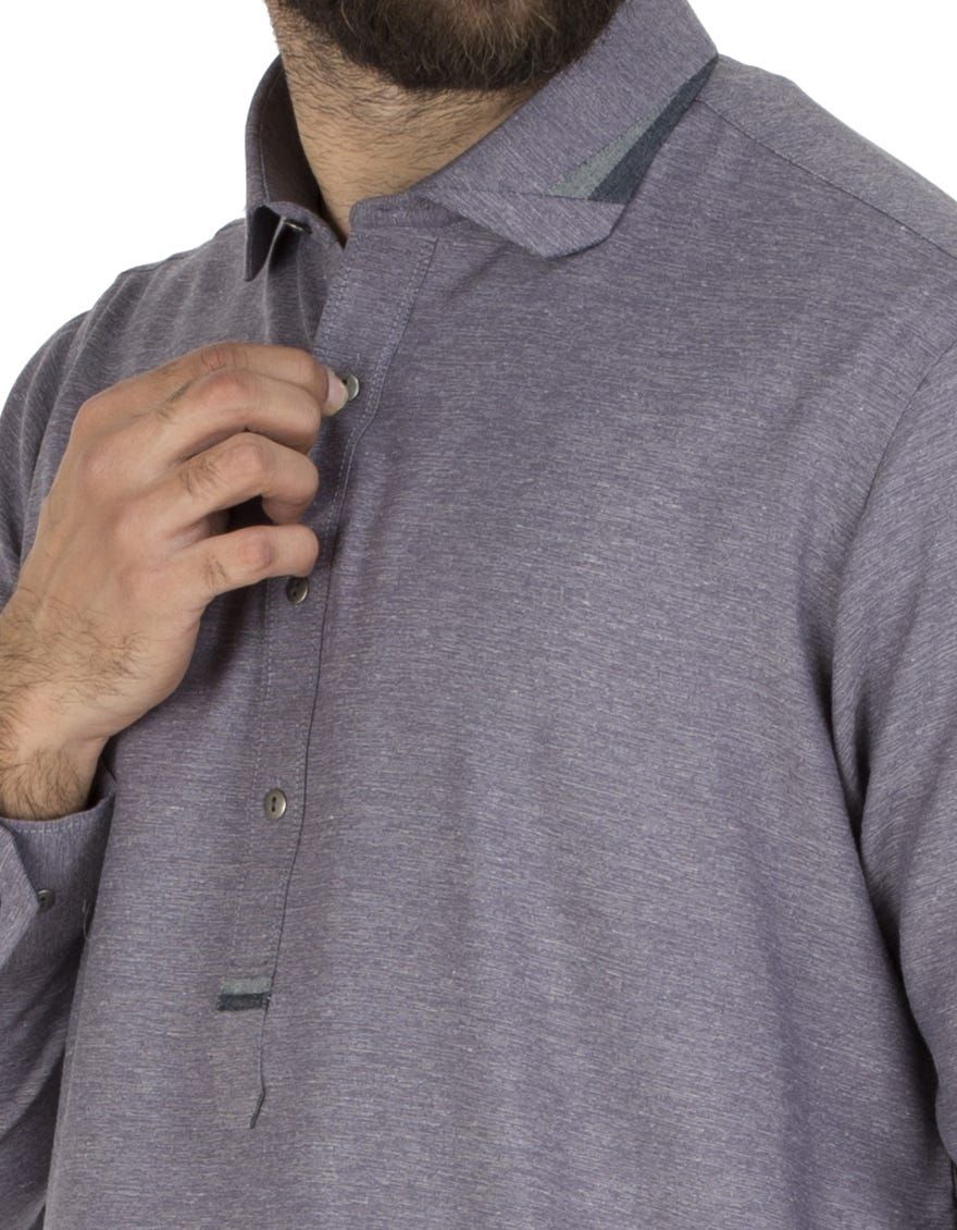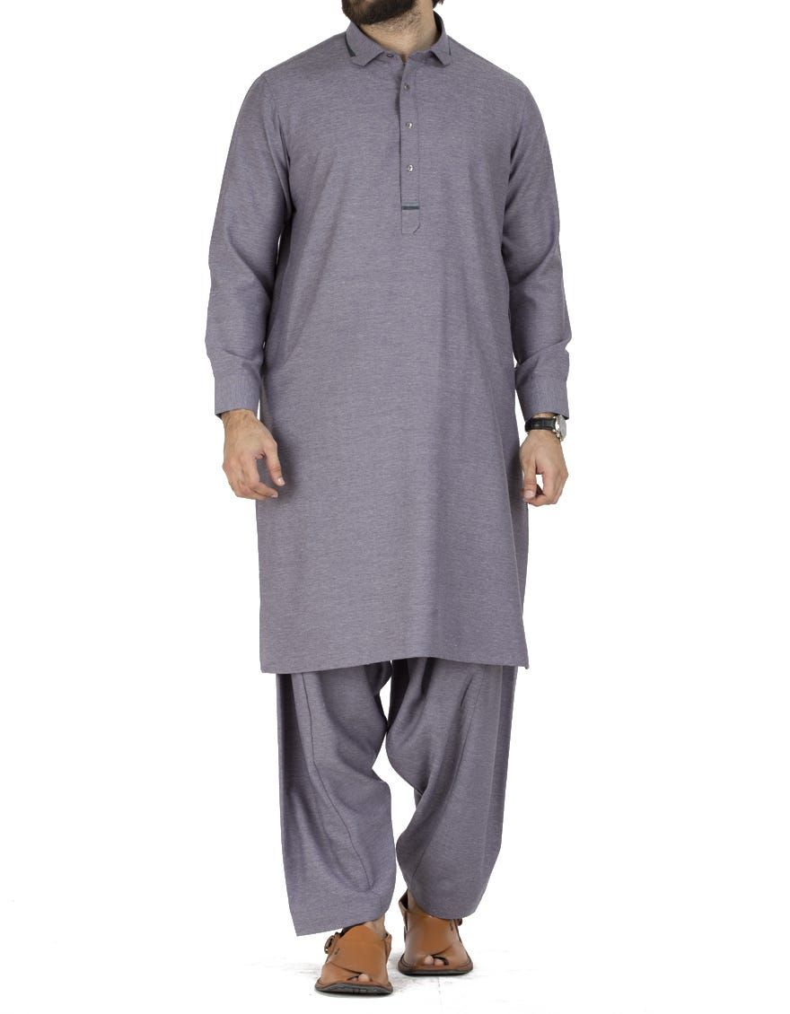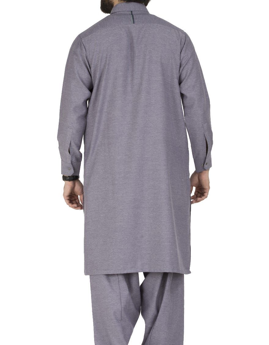 Semi-Formal Kameez Shalwar For Men With Computerized Machine Embroidery On Collar And Stitching Details On Placket.