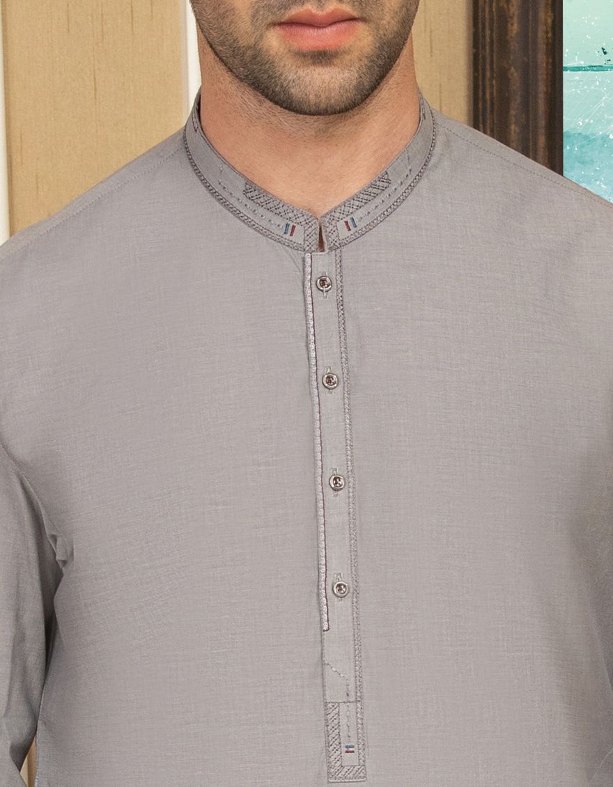 Casual Suit For Men With Computerized Machine Embroidery & Stitching Work On Collar, Placket & Cuff.