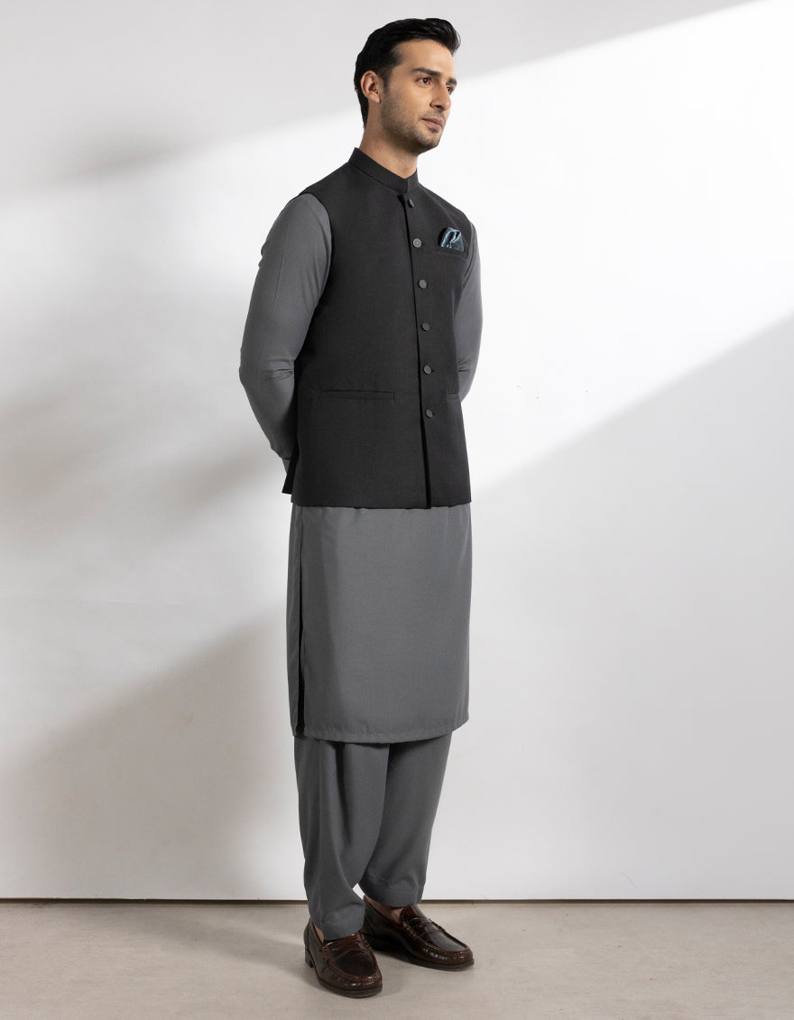 BLACK SUITING WAISTCOAT | JJVC-A-33535/S25/JJ10273-PN