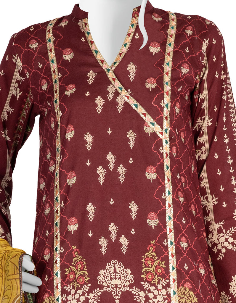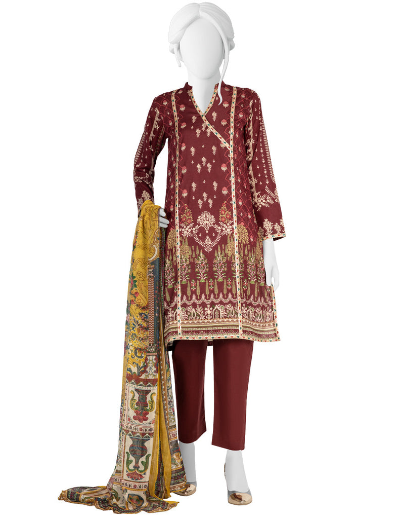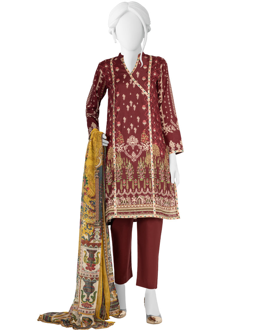 MAROON LAWN 3PC STITCHED | JLAWN-S-US-22-434/S MAROON MUGHAL (22-3001)