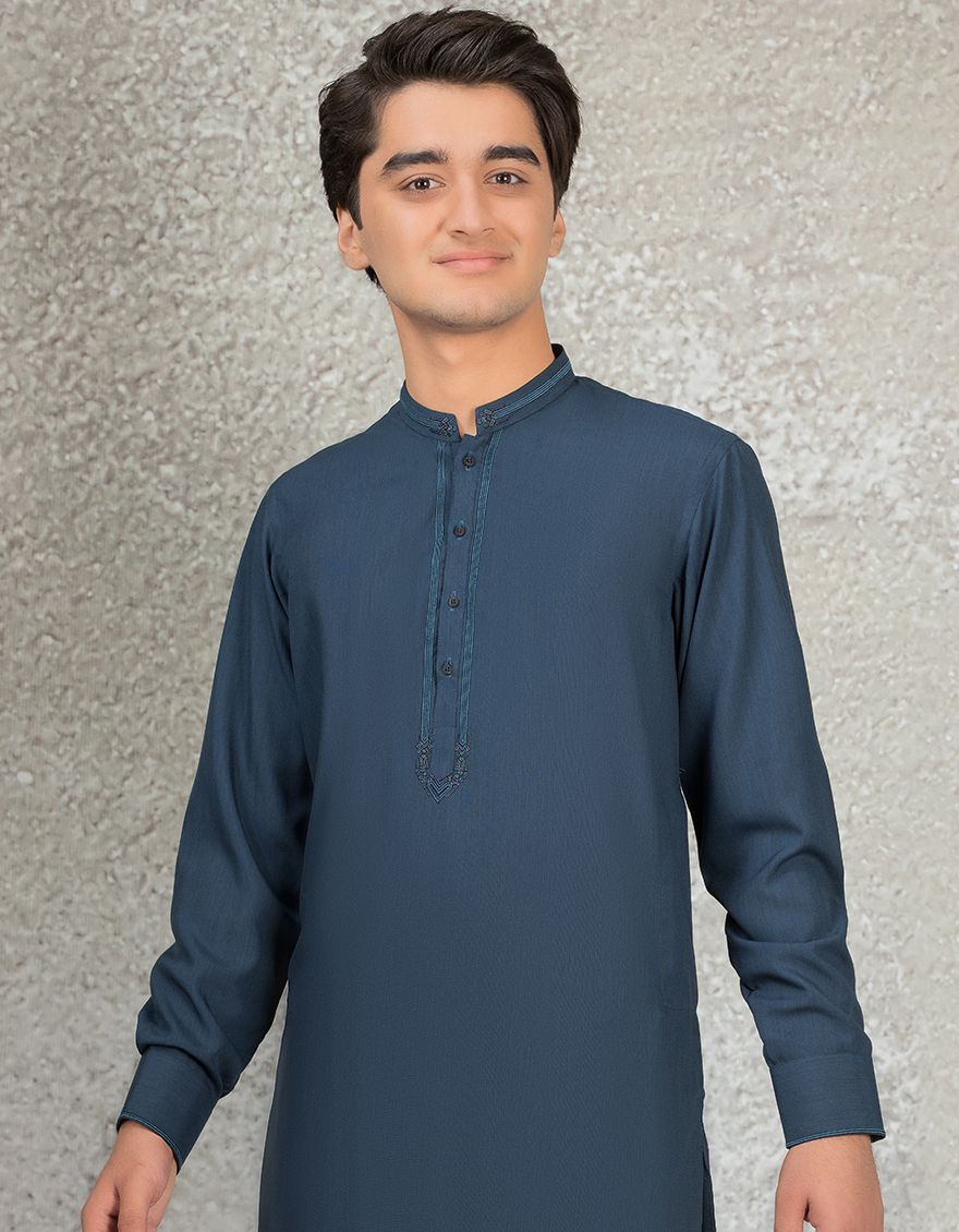 Casual Suit For Teen With Embroidery On Collar, Front As Well As On Cuffs.